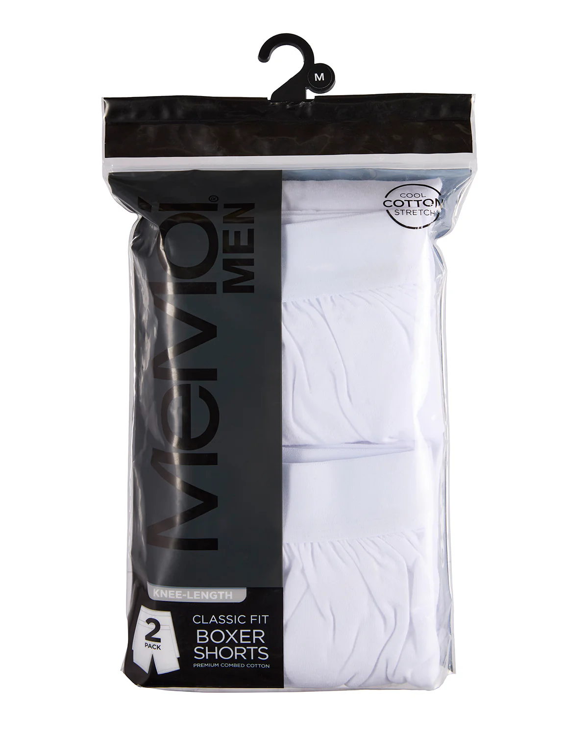 2 Pair Men’s Knee-Length Cotton-Rich Knit Boxer Shorts