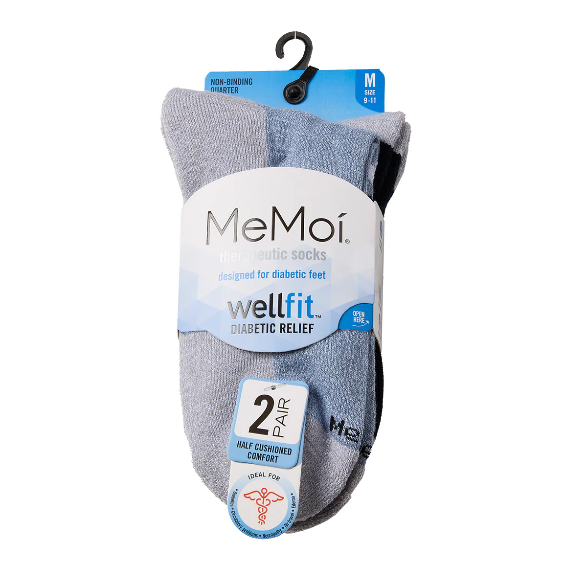 2 Pair Pack Diabetic Full Cushioned Quarter Socks