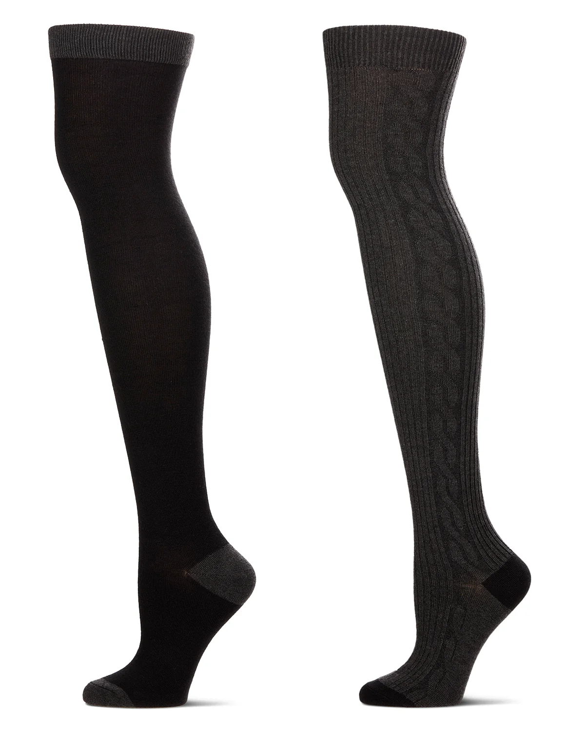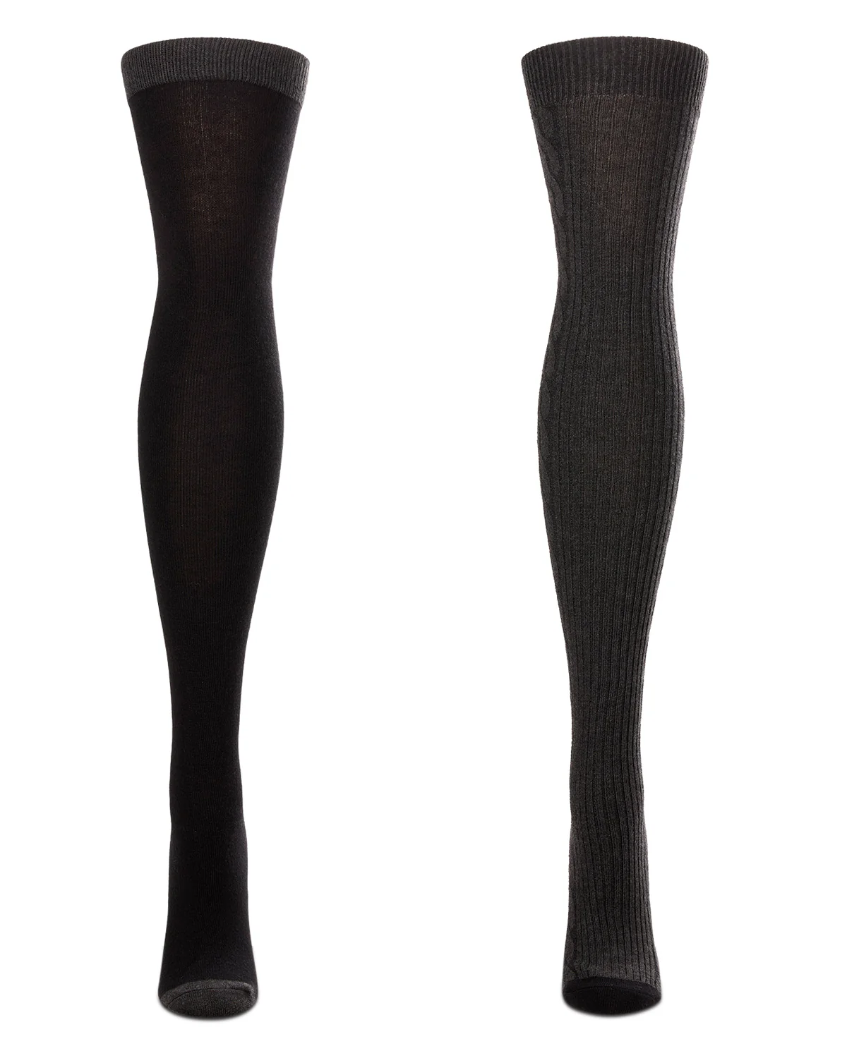 2 Pair Women’s Ultra-Soft Ribbed and Side Cable Over the Knee Socks