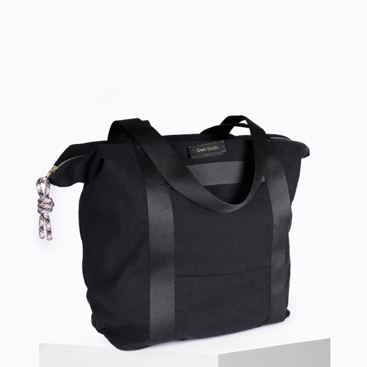 Pensé pour vous suivre du matin au soir, le 24H Bag Noir est le cabas en coton bio idéal pour une journée bien remplie. Son format généreux accueille facilement ordinateur, dossier, déjeuner ou vêtements de sport.