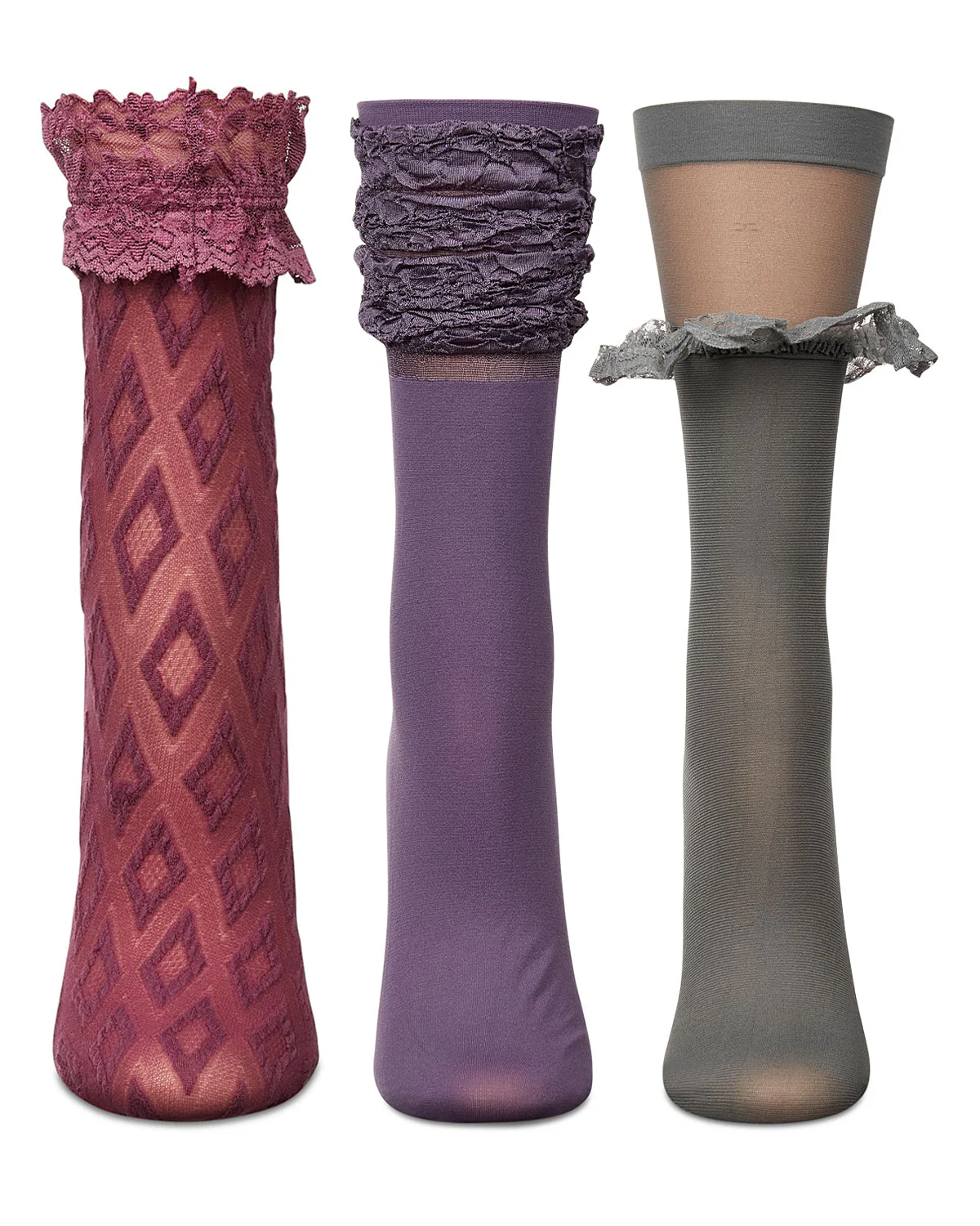 Put your prettiest foot forward with these elegant women’s crew socks. They come in a stylish array of flirty, feminine styles featuring lavish lace, dainty ruffles, gorgeous gathers, and more. Plus, they’re crafted for all-day comfort in a silky-smooth nylon blend with spandex for flawless fit.