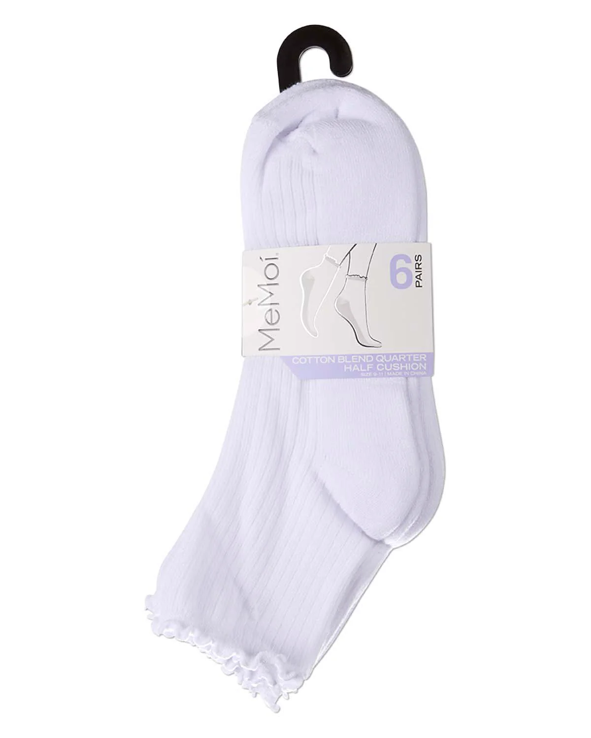 6 Pair Women’s Ribbed Cotton-Rich Picot-Trimmed Quarter Socks