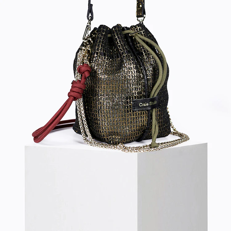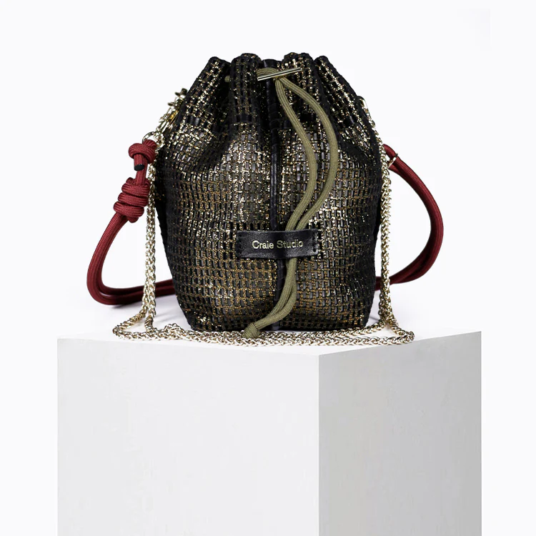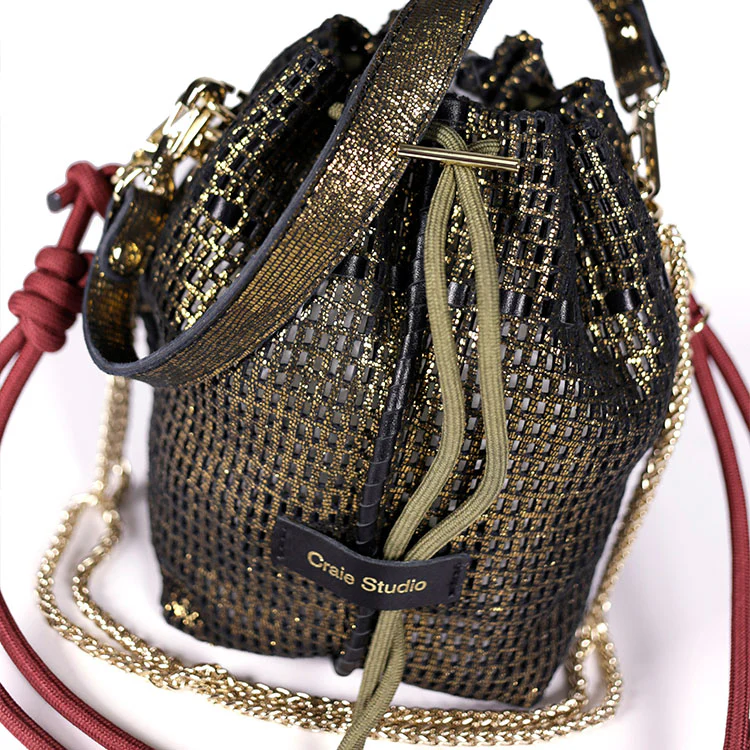 Le sac Bibi Dimaond Bronze est un mini sac seau au design audacieux, fabriqué à la main dans notre atelier de Casablanca.