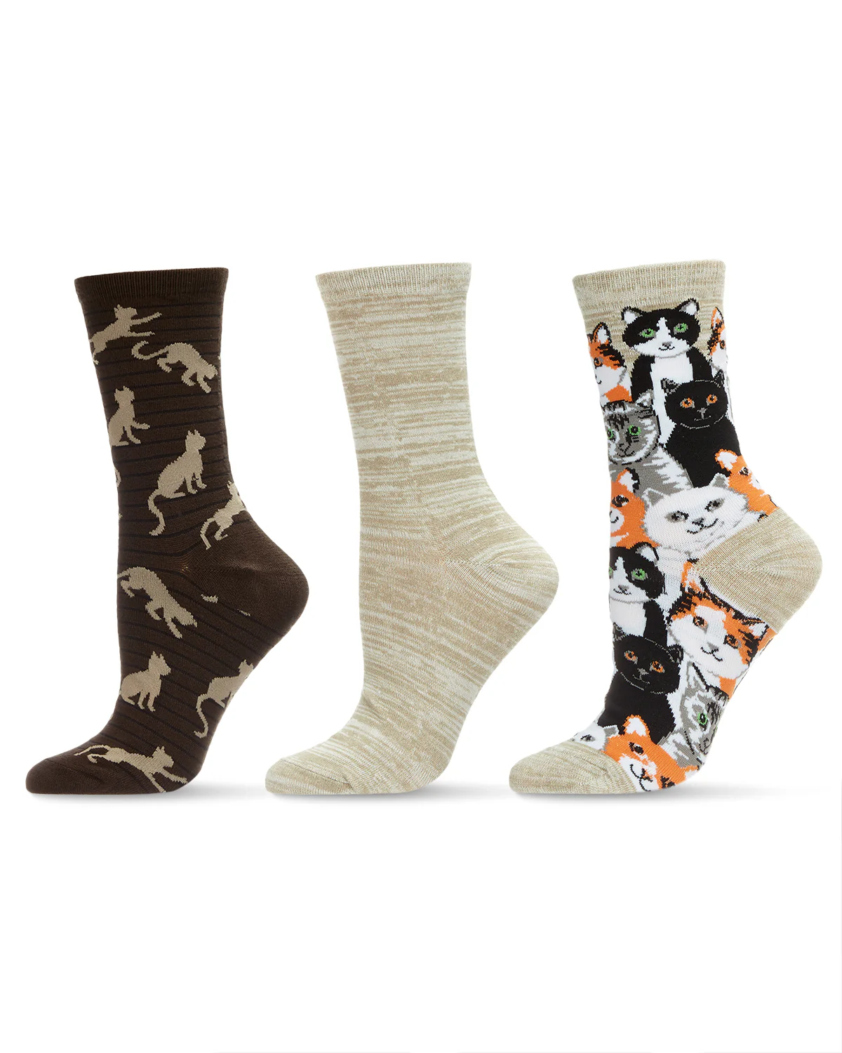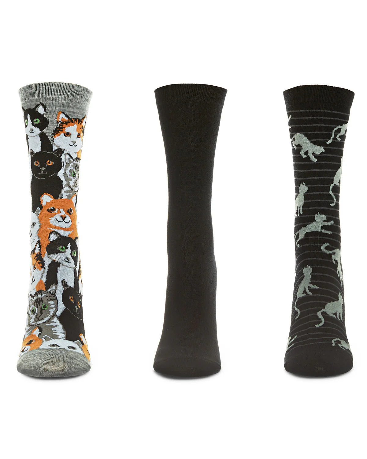 Cats Montage Bamboo Blend Crew 3 Pair Pack