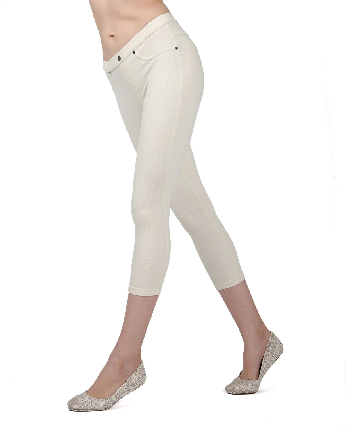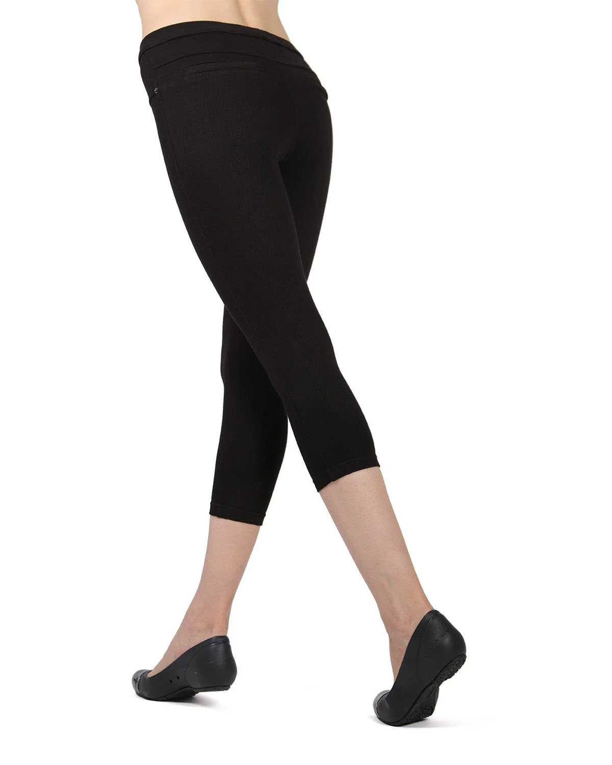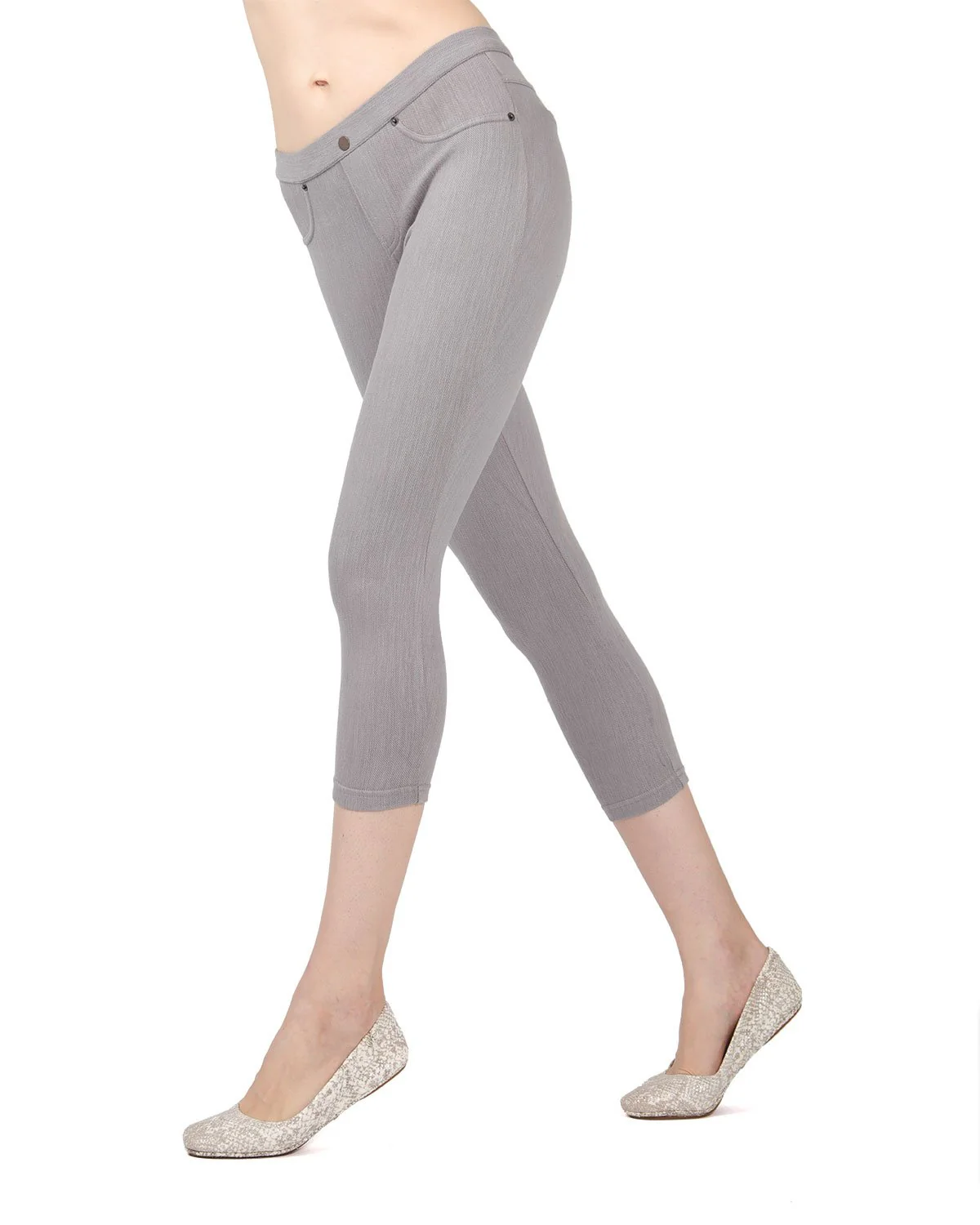 Denim Zipper Capri Cotton Blend Jean Leggings