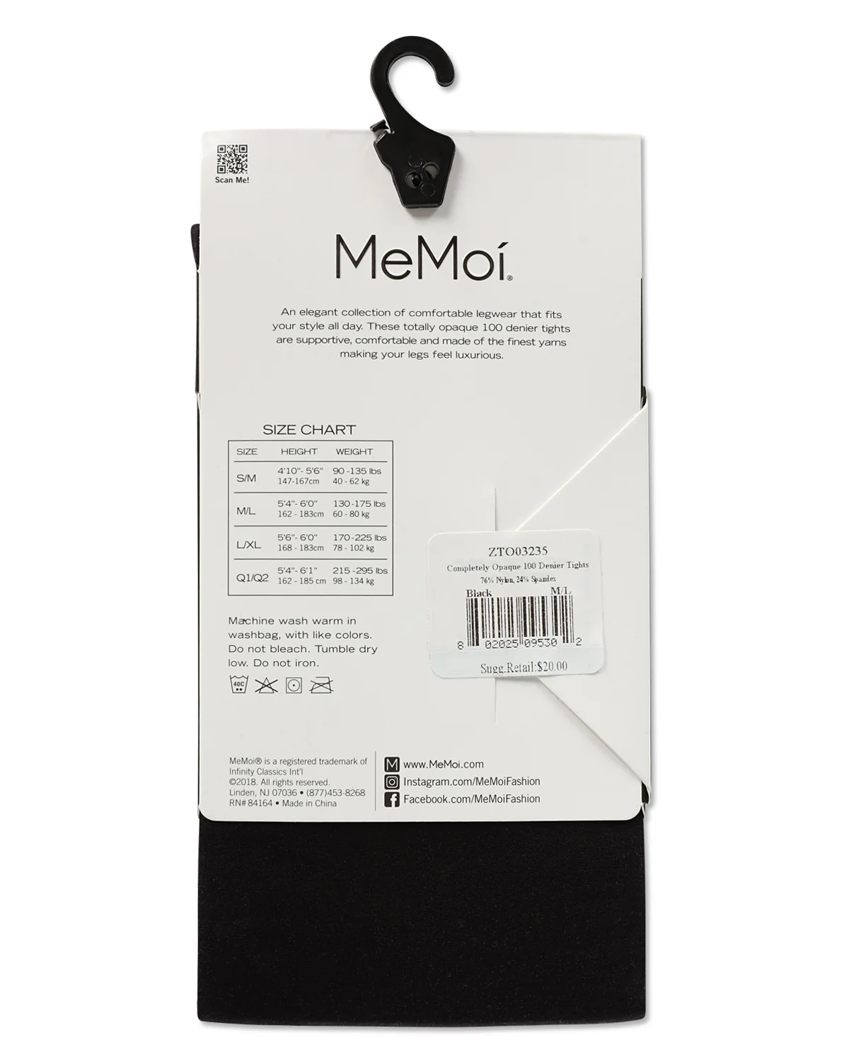 - 100 denier (highest opacity) gives solid look