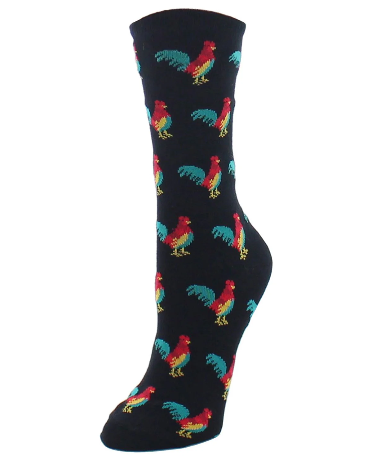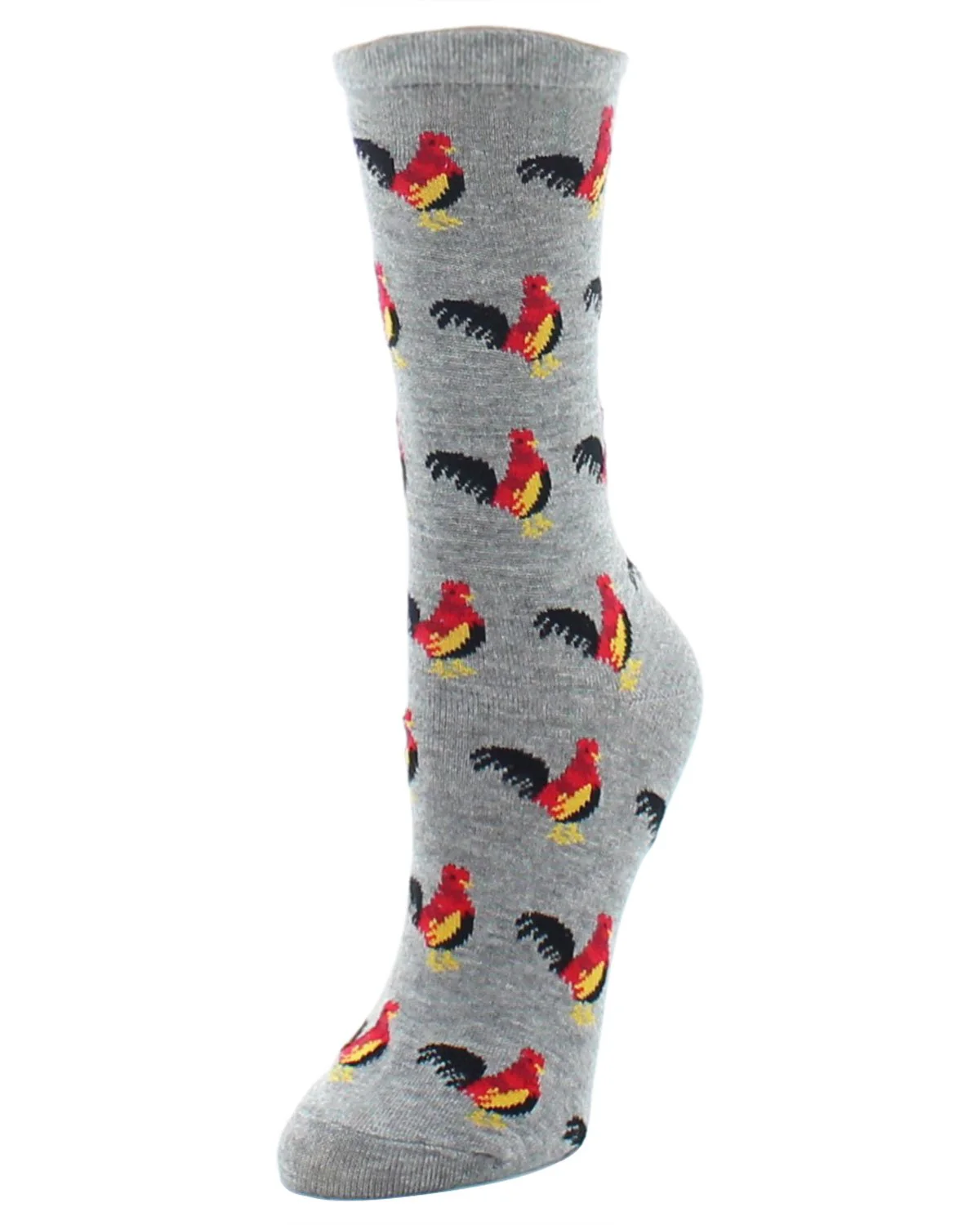 Early Bird Rooster Bamboo Blend Crew Novelty Socks