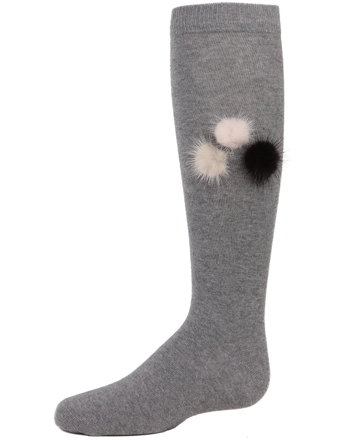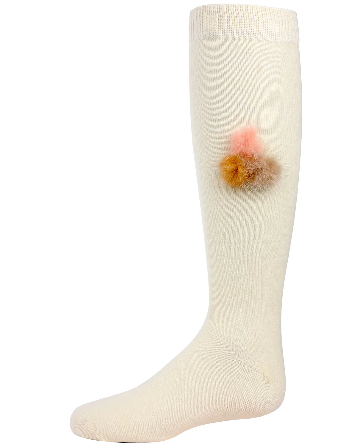 Fuzzy and Fun Girls Pom-Pom Cotton Blend Knee Socks