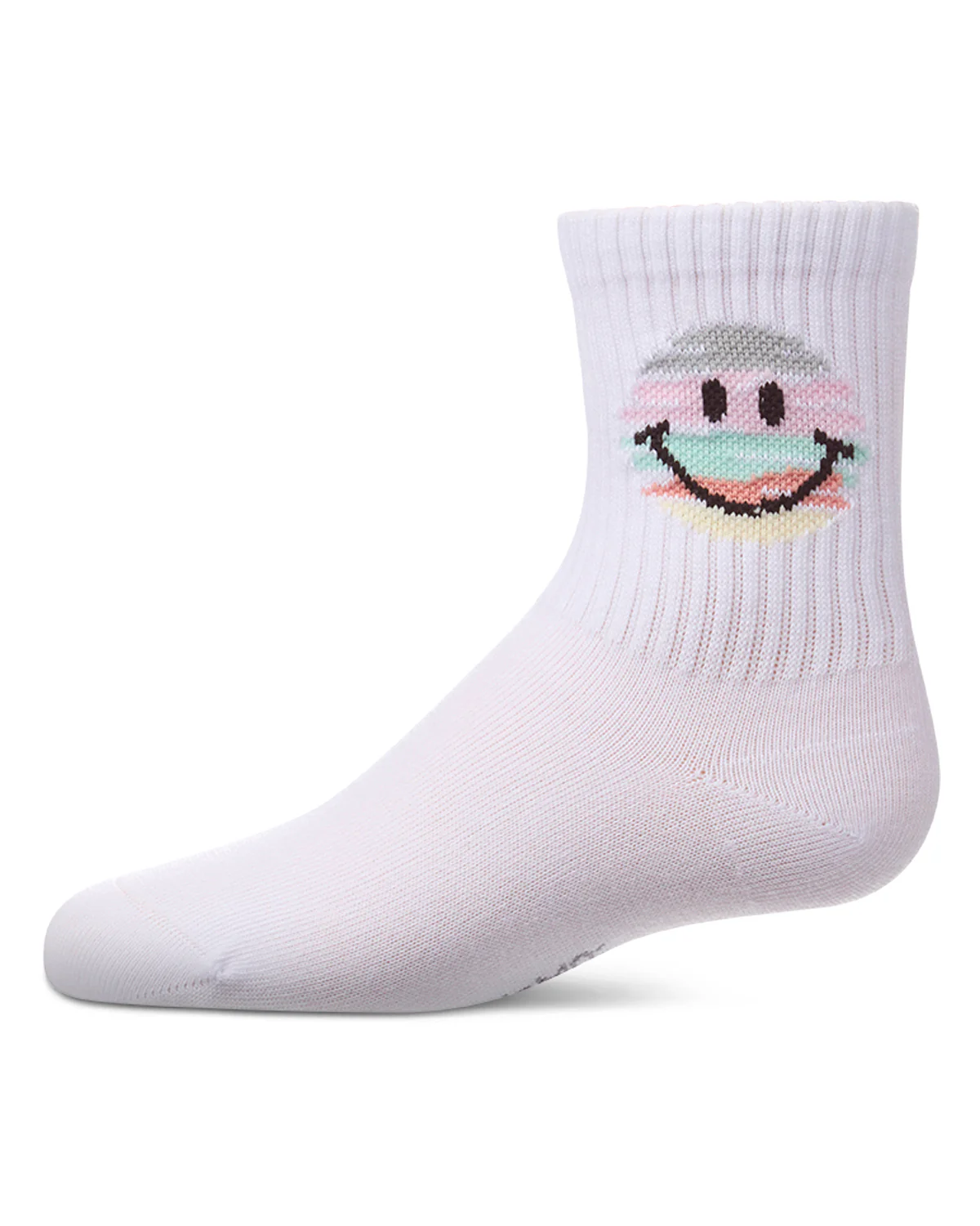 Girls « Colorful Smiley Face » Pointelle Ribbed Cotton-Rich Novelty Crew Sock