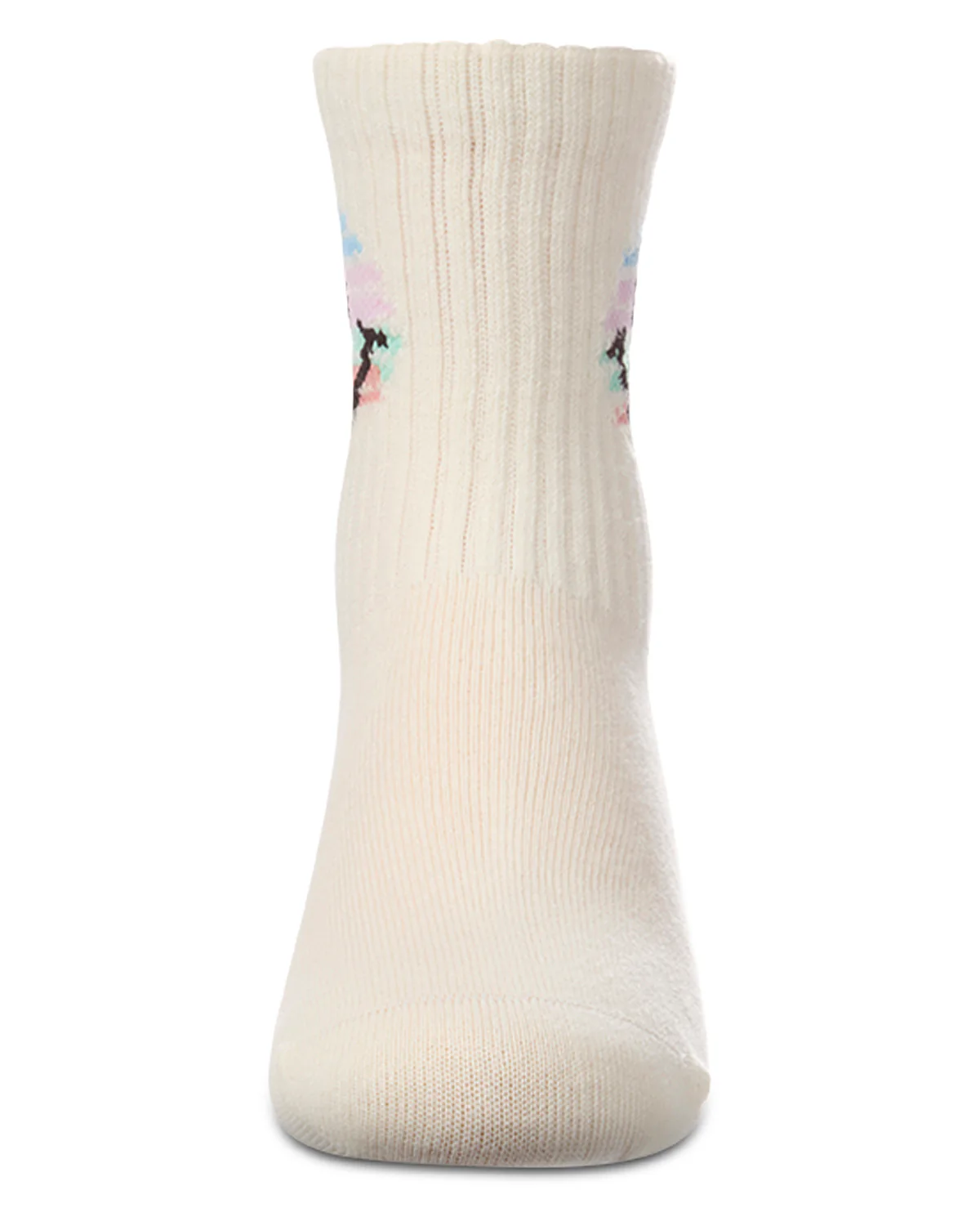 She’ll spread cheerful vibes at every step when she sports these charming girls’ crew socks. They’re cotton-rich for buttery softness and breathable all-day comfort. Plus, they’re adorned with a cute cross-stitch smiley face in a pastel watercolor pattern for the latest retro look.