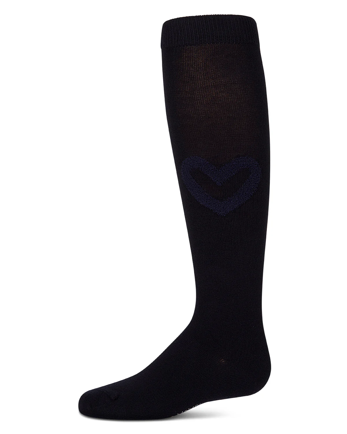 Girls Cotton-Rich Fuzzy Heart Embellished Knee Sock