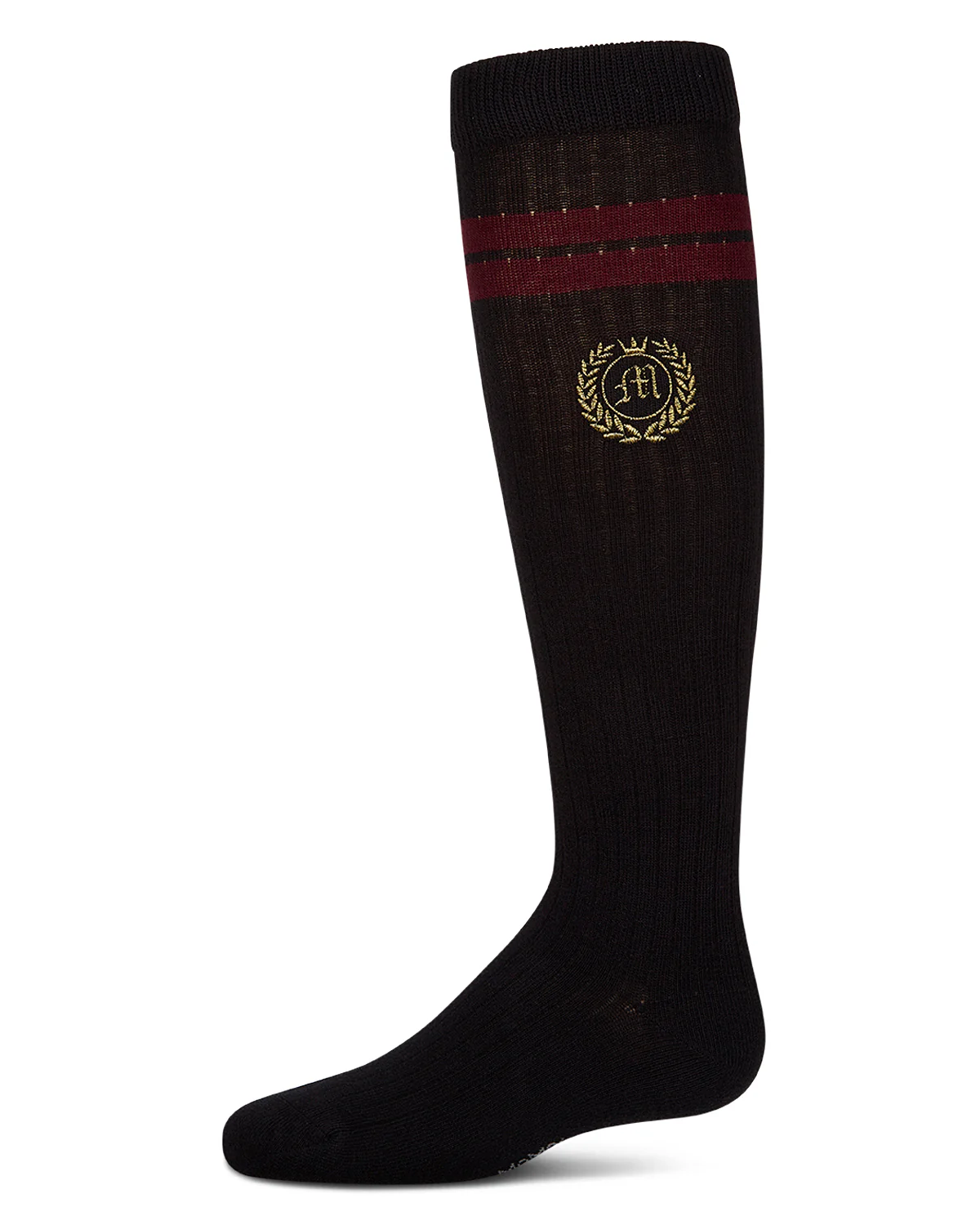 Does she love today’s posh preppy look? She’ll appreciate these trendy girls’ knee socks. They’re specially crafted for comfort in our cozy cotton-rich knit, complete with vertical ribbing for flexible custom fit. Plus, they boast tasteful traditional stripes and a classic embroidered crest for that vintage varsity vibe.