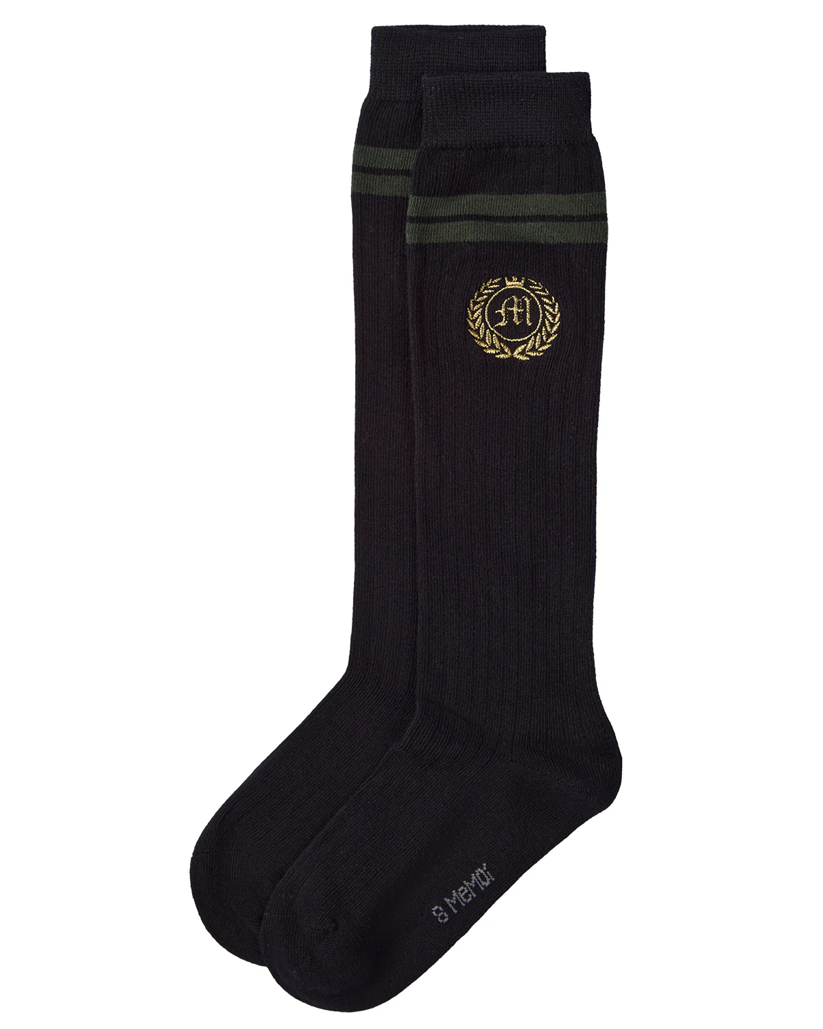 Girls Cotton Rich Varsity Striped and Embroidered Crest Knee Socks