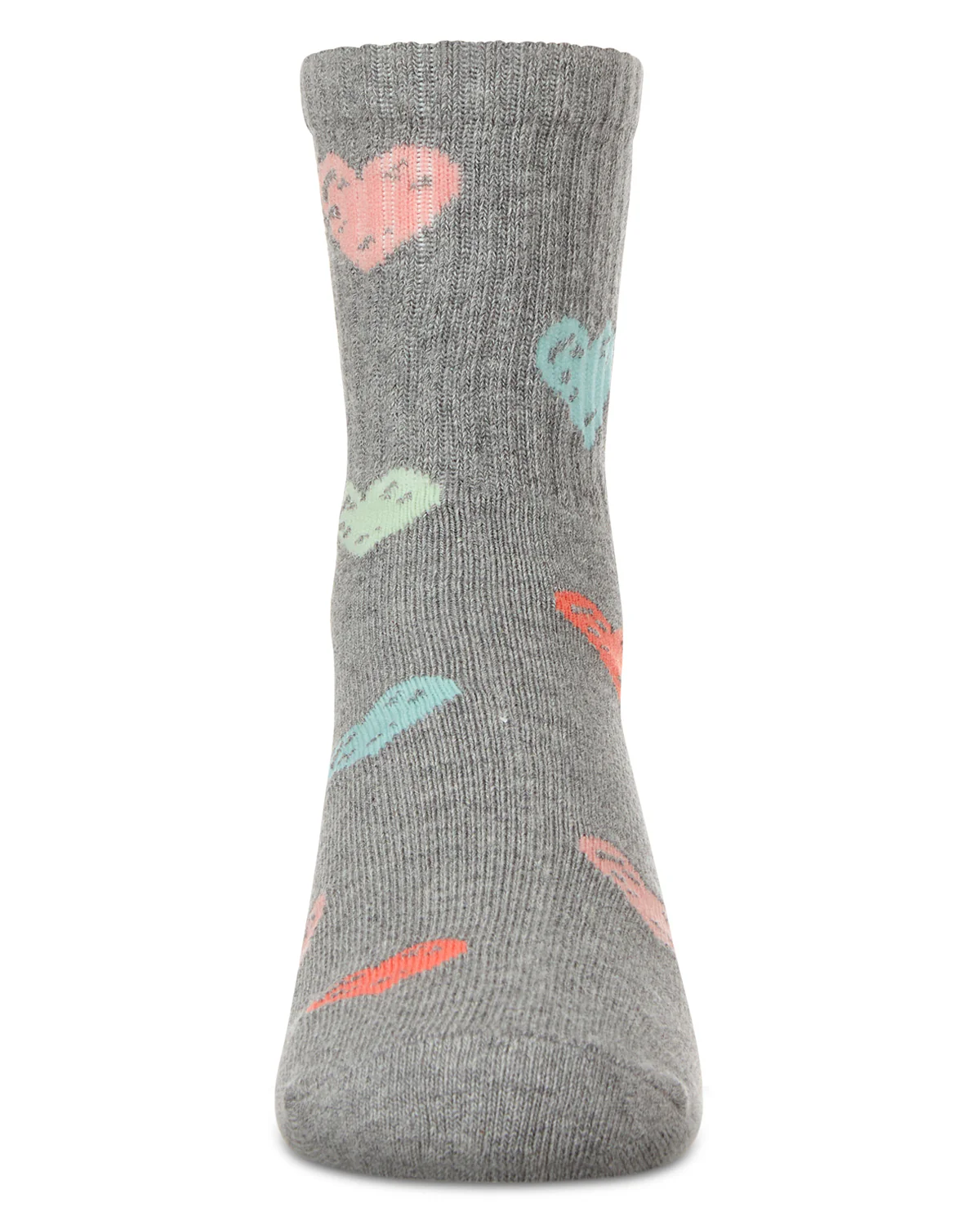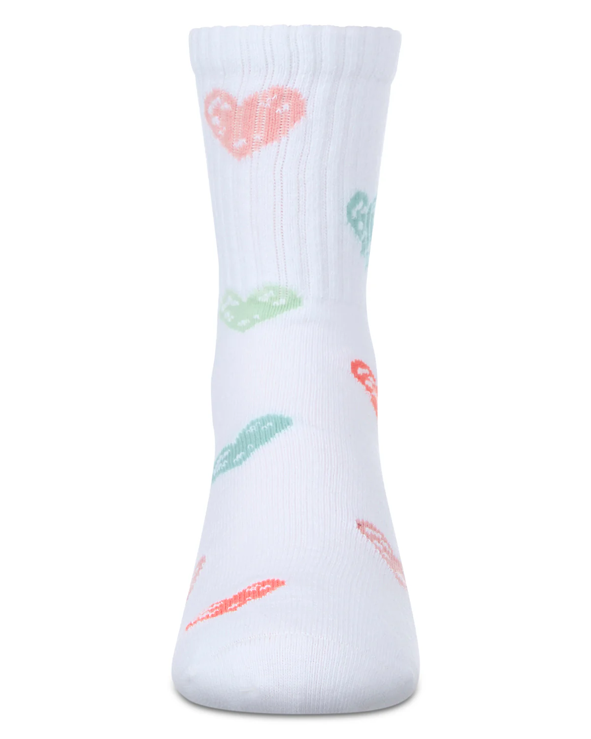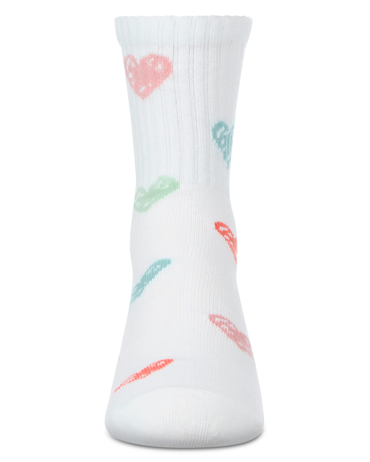 Here’s a fresh, fun way to keep her tootsies toasty: our rib-knit crew-length socks adorned with colorful hearts. The super-soft cotton blend stretches for flexible fit, while the non-chafe heel and toe ensure comfort at every step. Comfortable Cotton Blend Stay-Up Rib-Knit Top Reinforced Heel and Toe Seams Trendy Graffiti Graphics