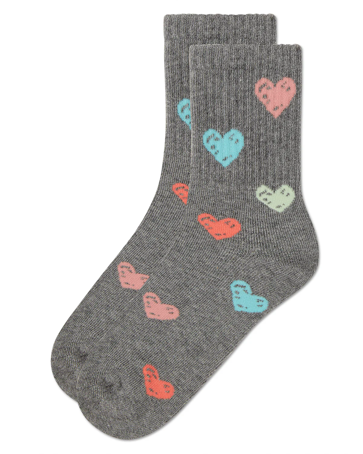 Here’s a fresh, fun way to keep her tootsies toasty: our rib-knit crew-length socks adorned with colorful hearts. The super-soft cotton blend stretches for flexible fit, while the non-chafe heel and toe ensure comfort at every step.