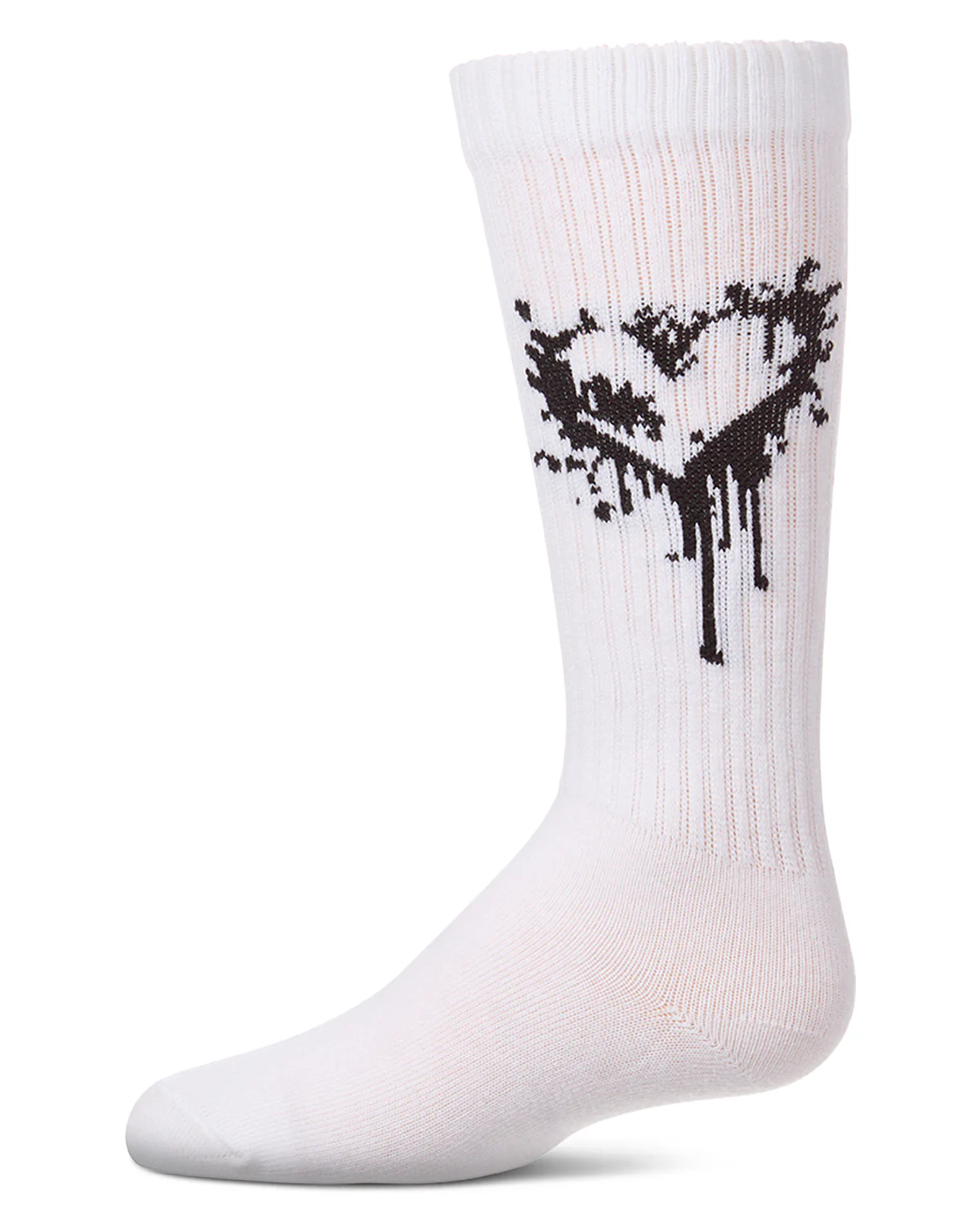 Girls « Dripping Heart » Ribbed Cotton Blend Novelty Knee High Sock