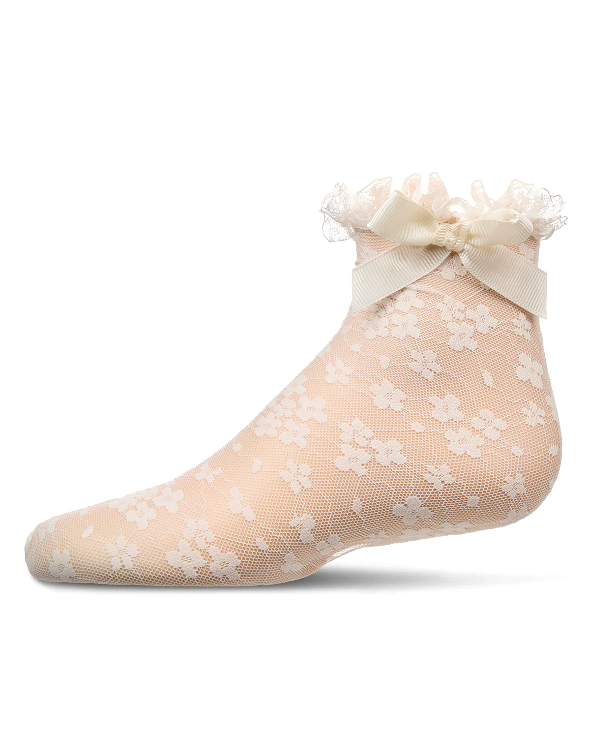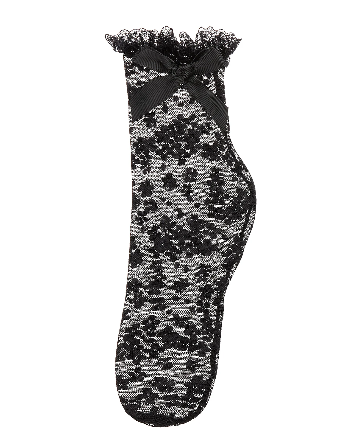 Girls Floral Lace Bow Trim Ankle Sock