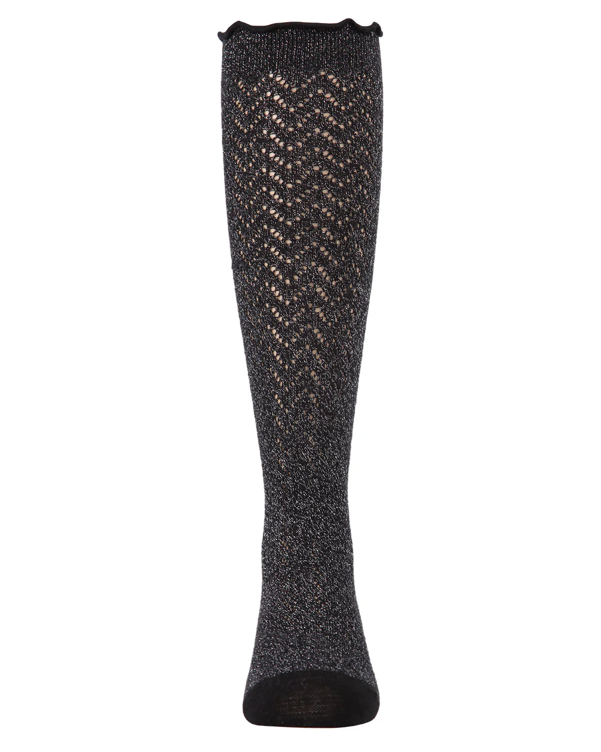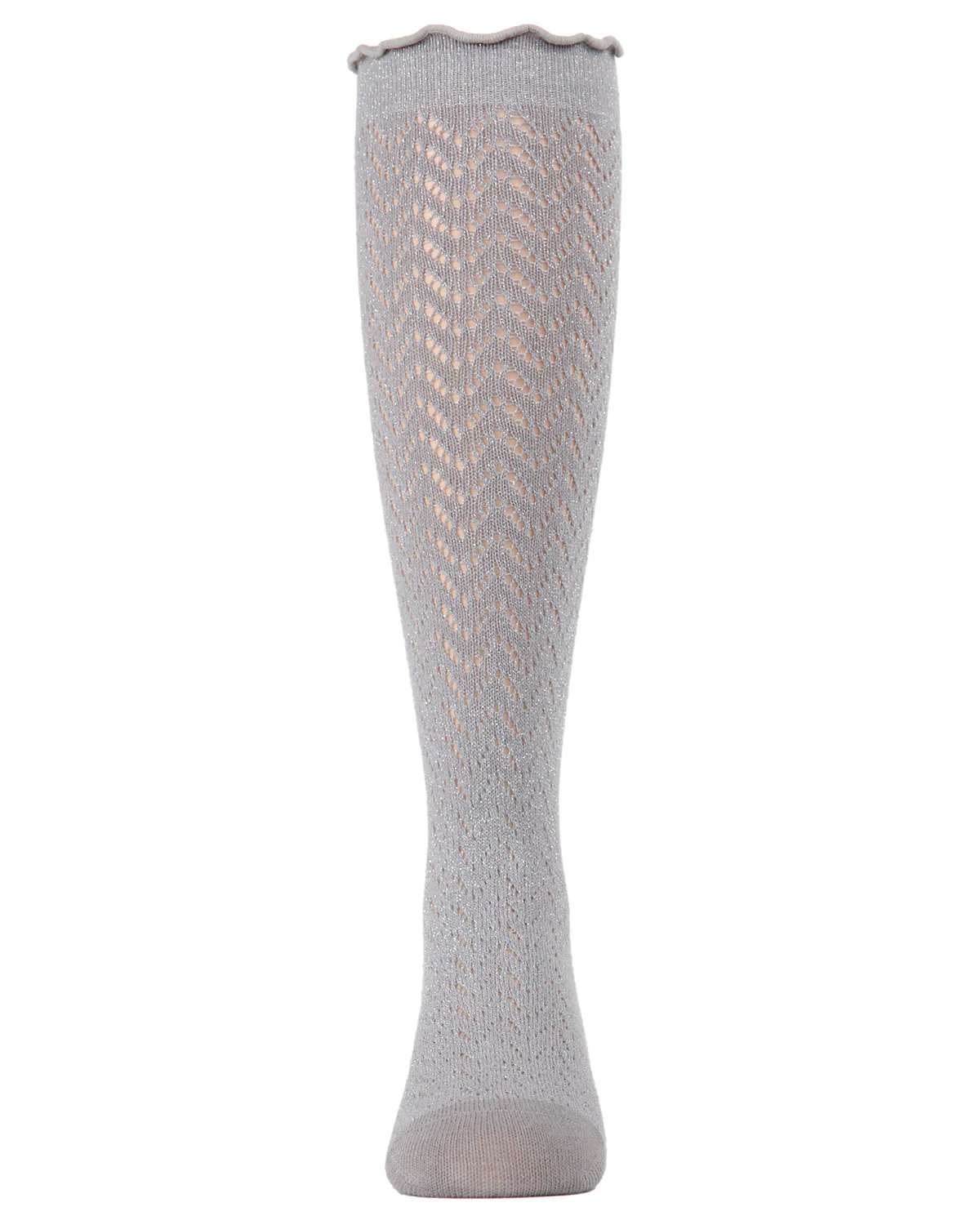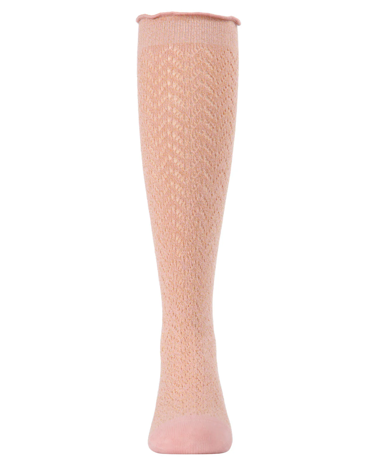 Girls Open Work Shimmer Cotton Blend Knee High Socks