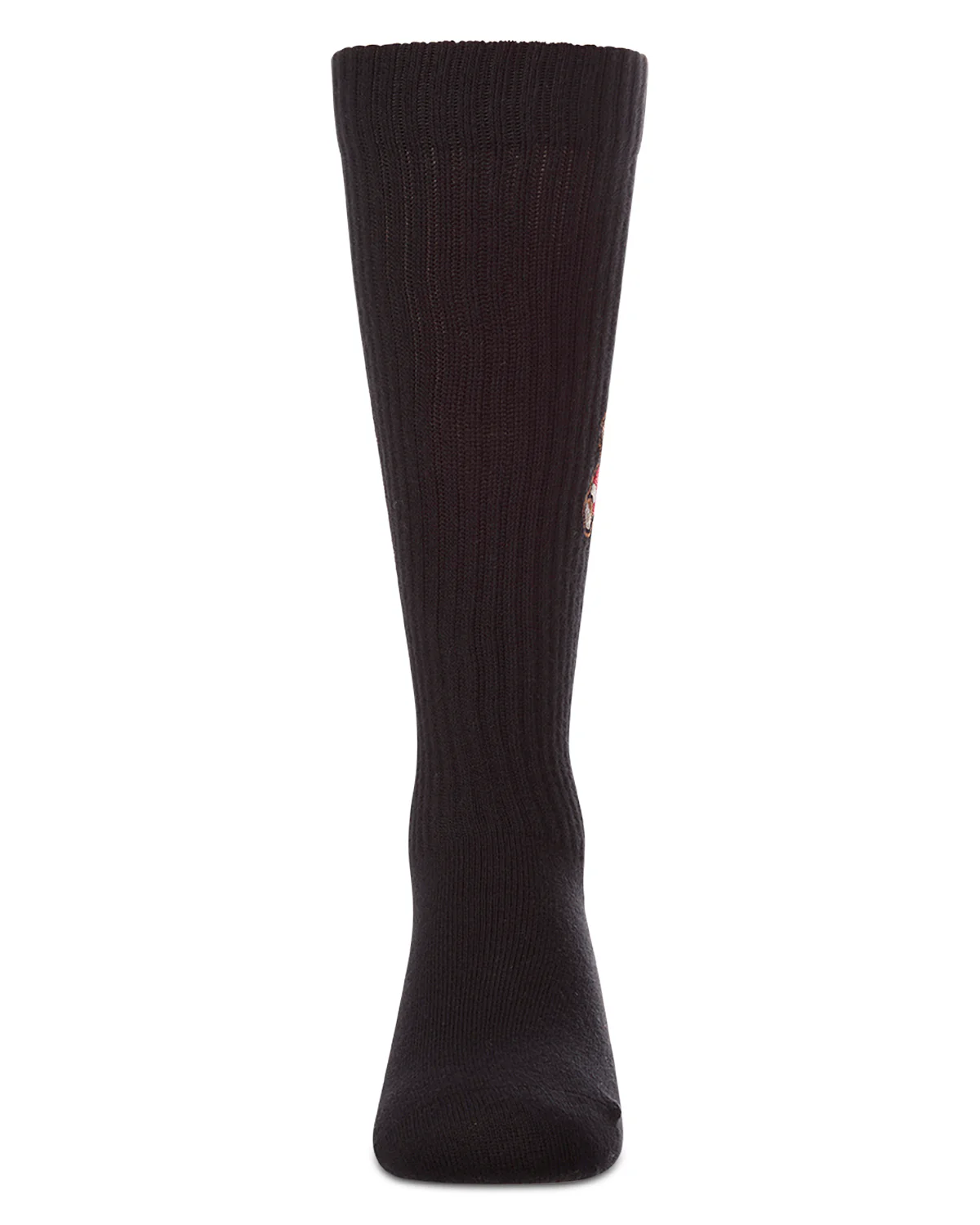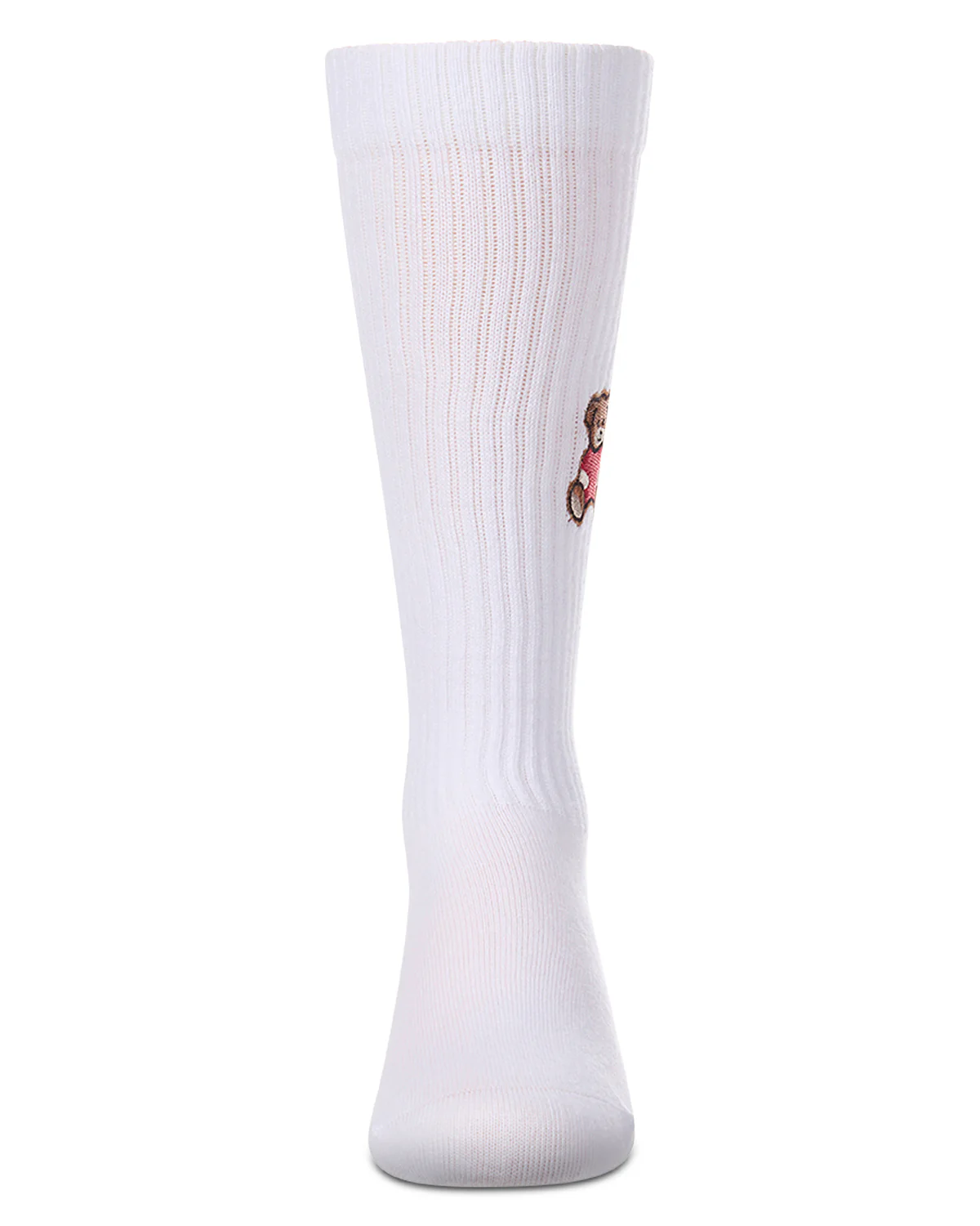 So cute we can barely bear it. These girls’ knee high socks are adorably trimmed with a charming embroidered bear. They’re cotton-rich for softness, with spandex for shape-keeping fit. And they’re ribbed for flexible stretch and classic athletic style.