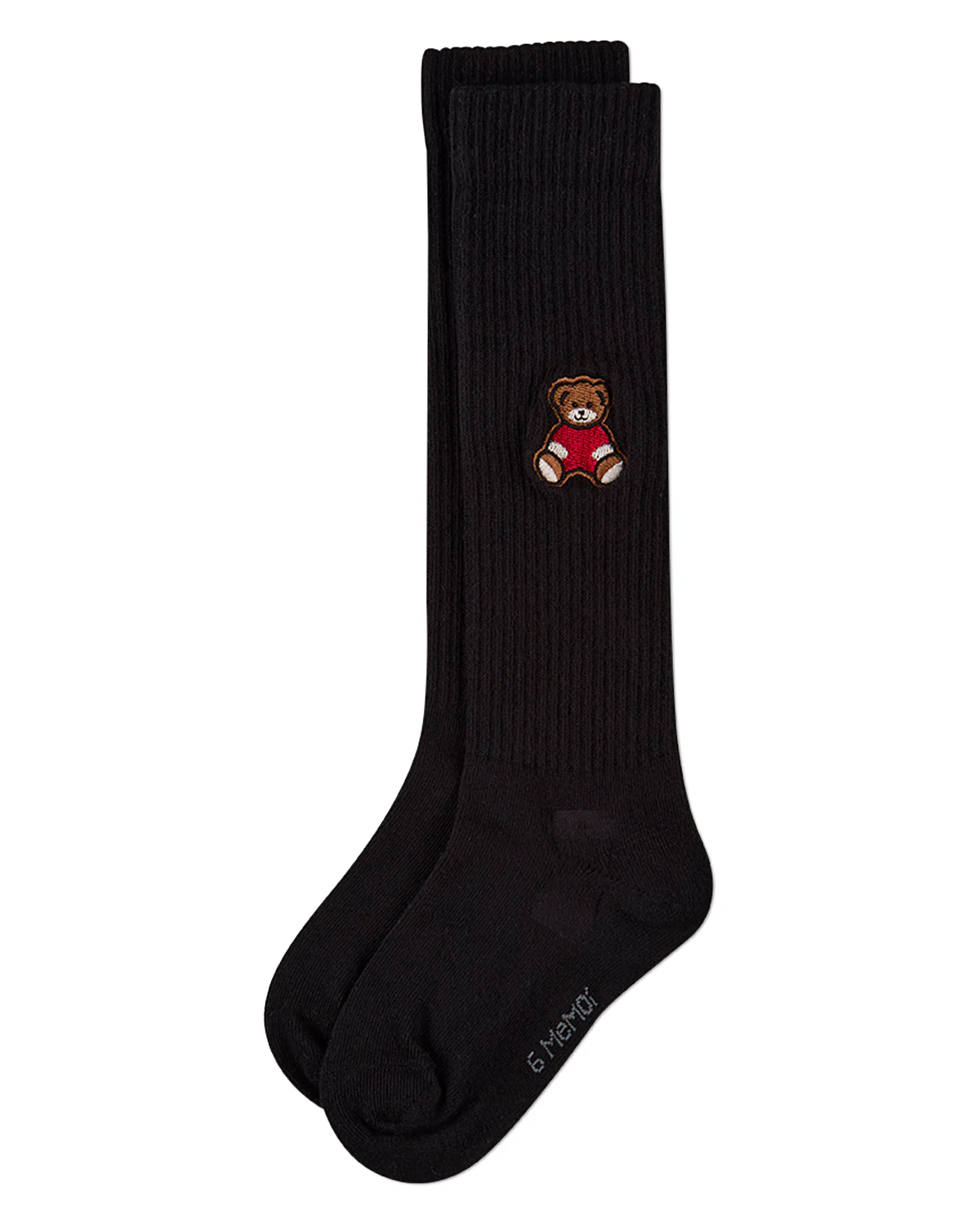 Girls Ribbed Cotton-Rich Knee High Sock with Embroidered Teddy Bear