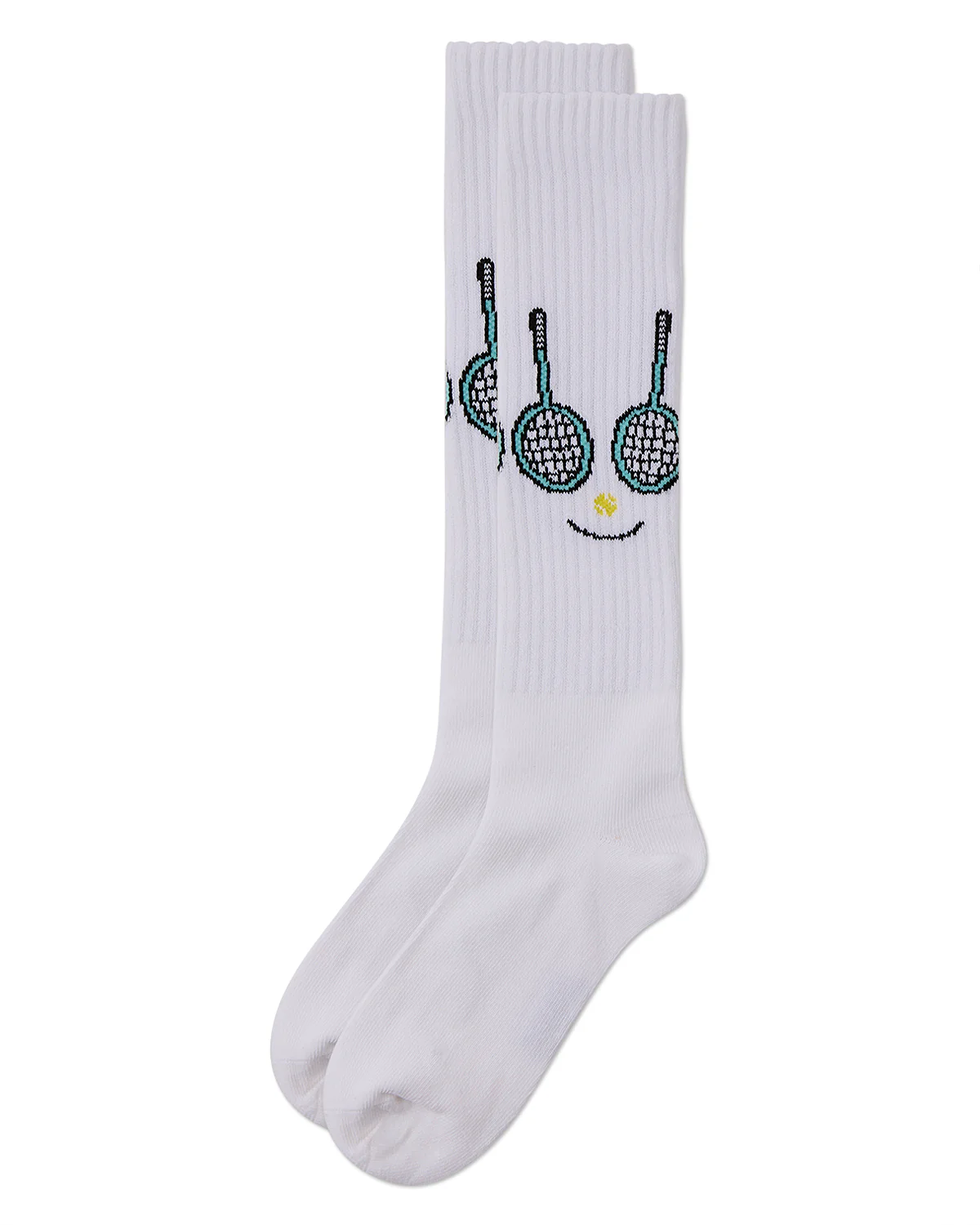 Girls Ribbed Stretch Cotton « Tennis Smiley Face » Knee Sock