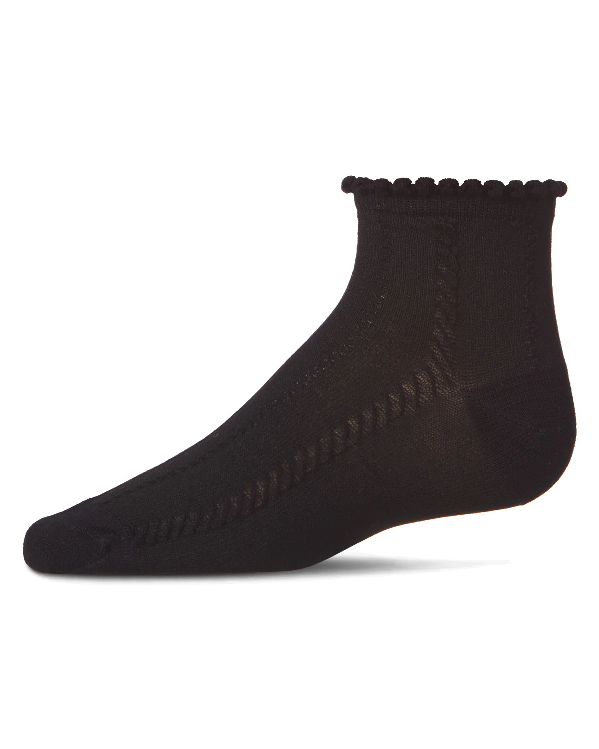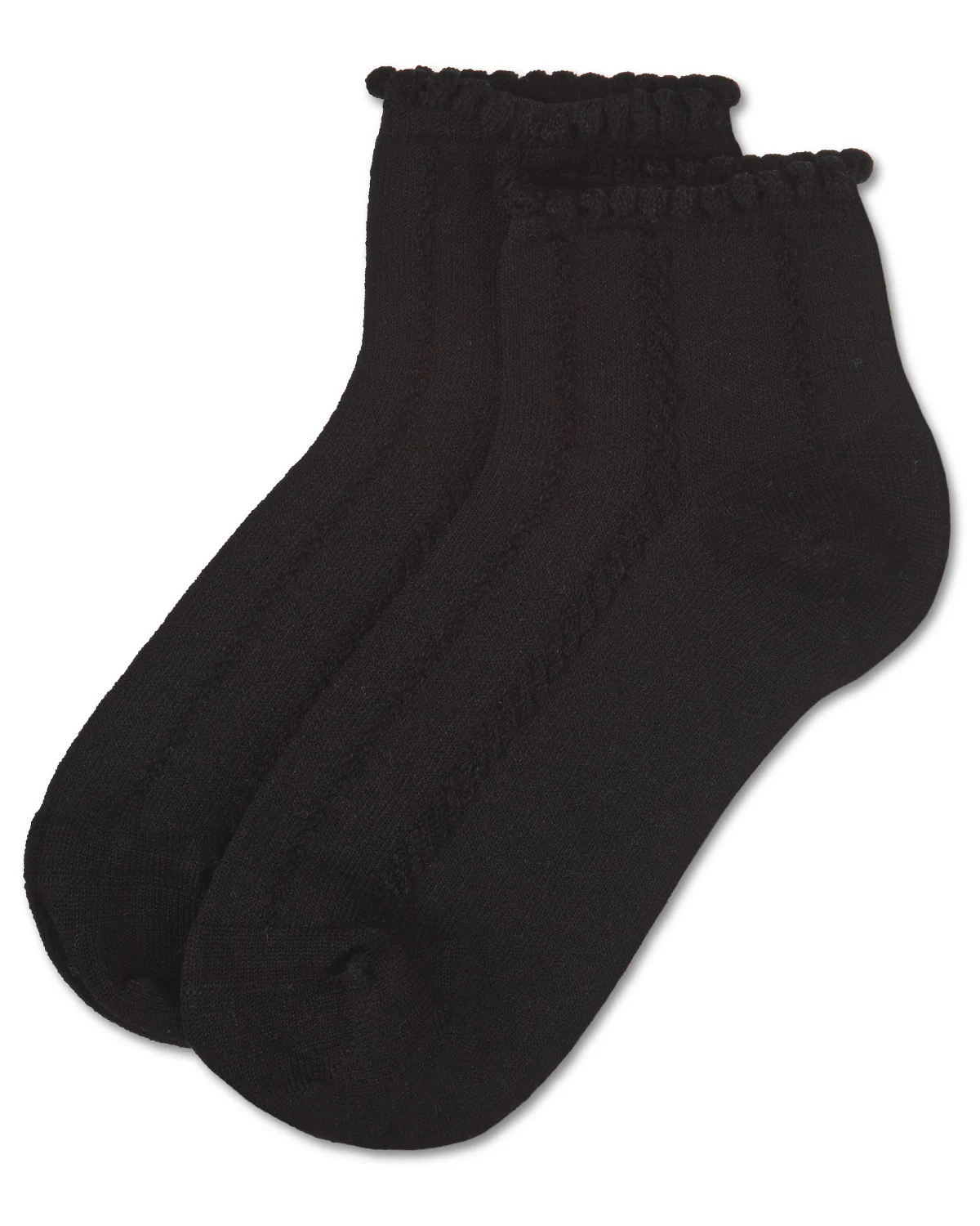 Our Rope Stitch Anklet Socks feel just as good as they look. Ultra-soft with a stretchy and lightweight mercerized cotton knit that’s stronger, shinier, and less likely to pill. Crafted with a comfortable hand-linked toe seam that won’t irritate precious skin, and finished with a scalloped edge cuff for the sweetest addition.