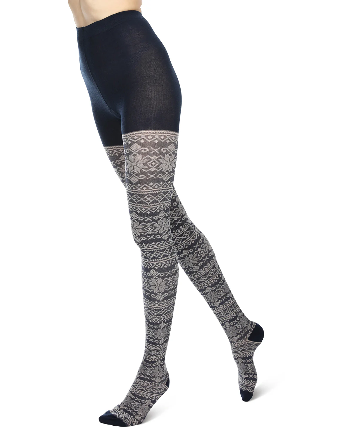 Holiday Snowflake Patterned Cotton Blend Sweater Tights