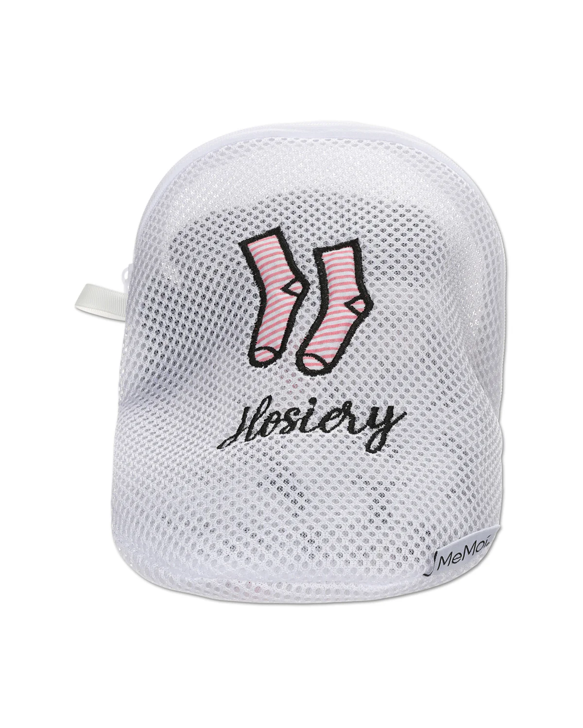 Take care of your MeMoi hosiery, socks, bras, and other delicates with our Embroidered Mesh Wash Bag. Designed to be filled with all your undergarments, then tossed directly into the wash for a safe and thorough cleaning.