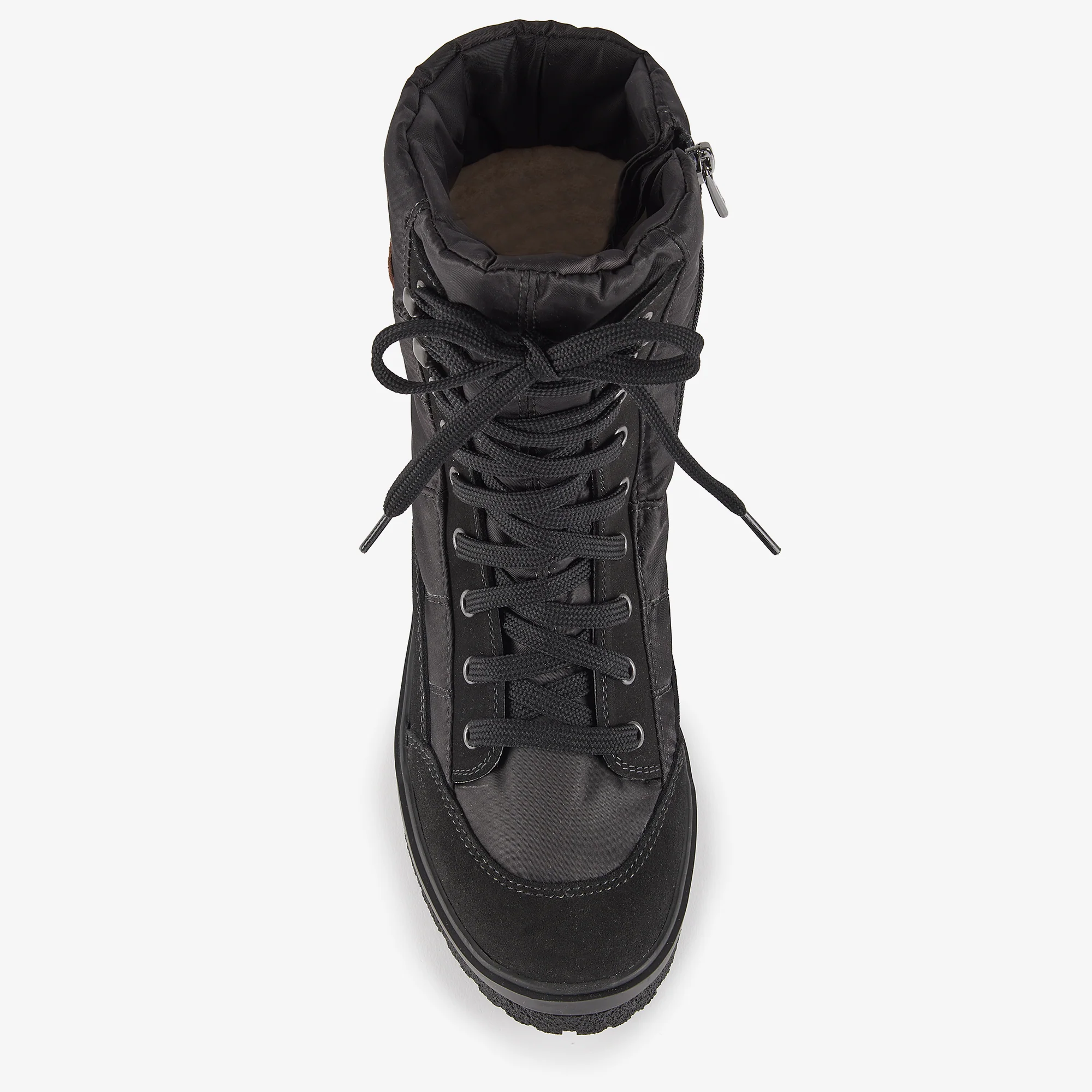 Affrontez le temps froid avec nos nouvelles bottes pour femmes Midnight, conçues pour garder vos pieds au chaud et au sec de l’automne jusqu’à l’hiver. Dotées d’un lançage pratique et d’une tige en hydro-suède et techno, elles offrent confort et protection contre la neige et la glace. Que ce soit pour vos déplacements quotidiens ou vos aventures en plein air, comptez sur Midnight pour un style intemporel et un confort tout au long de la journée.