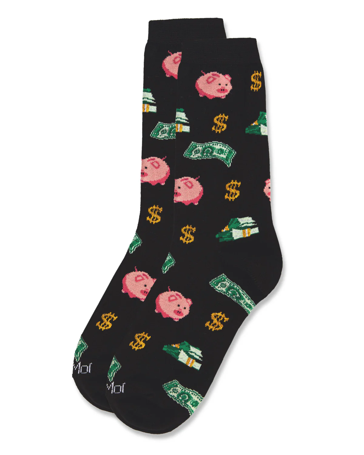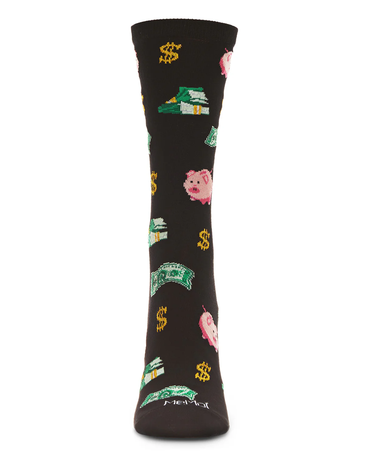 Our Money in the Bank Bamboo Blend Crew Sock will have you eager to save as much as you can. This cuddly crew sock is adorned in a piggy bank pattern accompanied by dollar bills and dollar signs. A bamboo blend gets softer with every wash and is the most eco friendly choice out there.