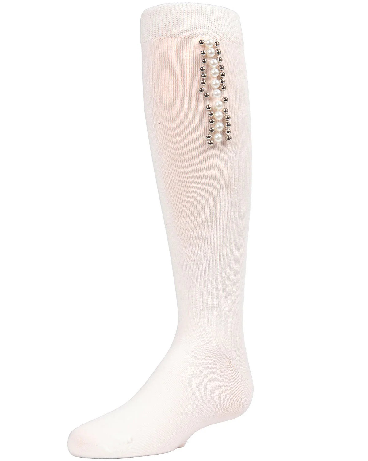 Pearls and Stripes Jeweled Girls Knee High Socks