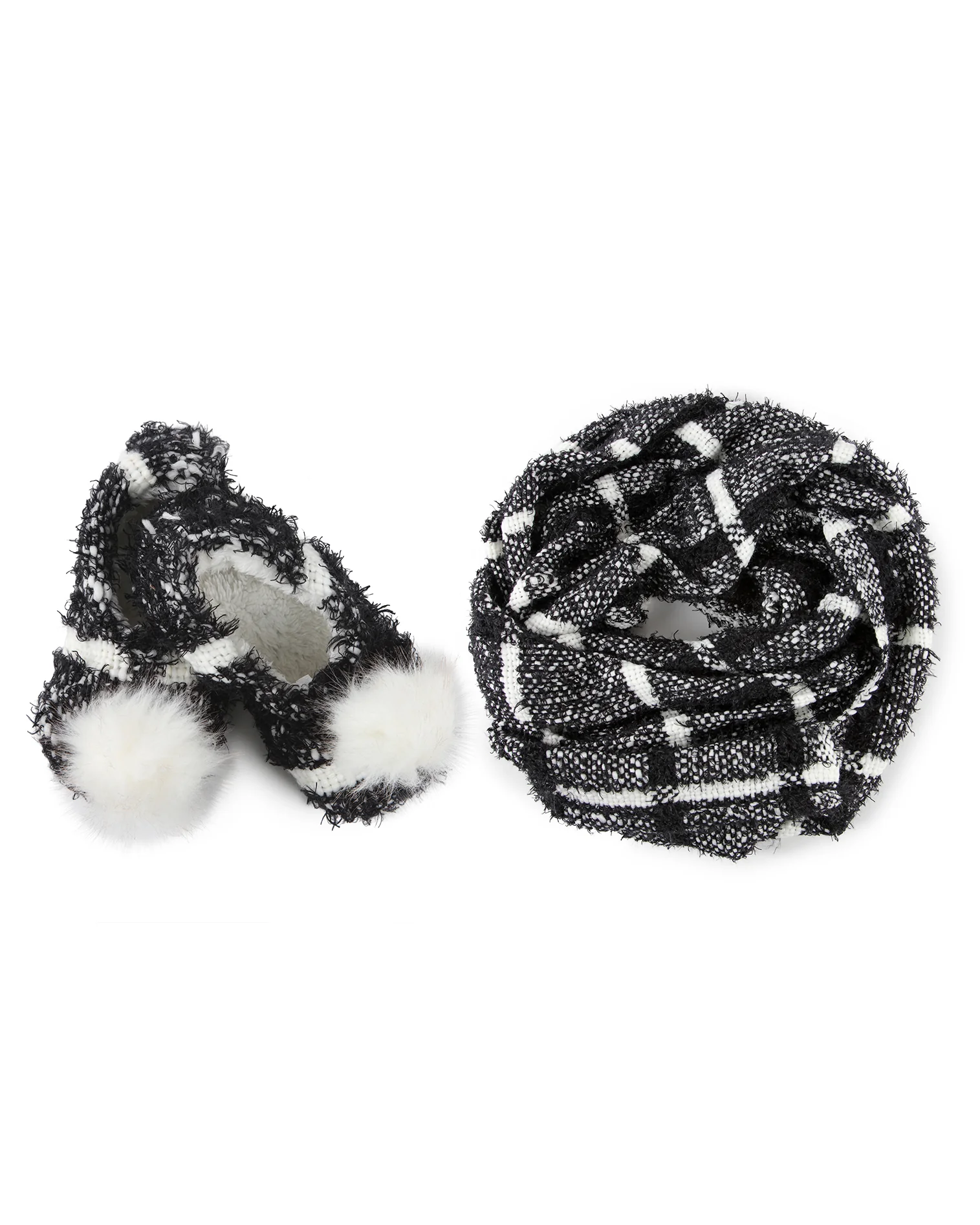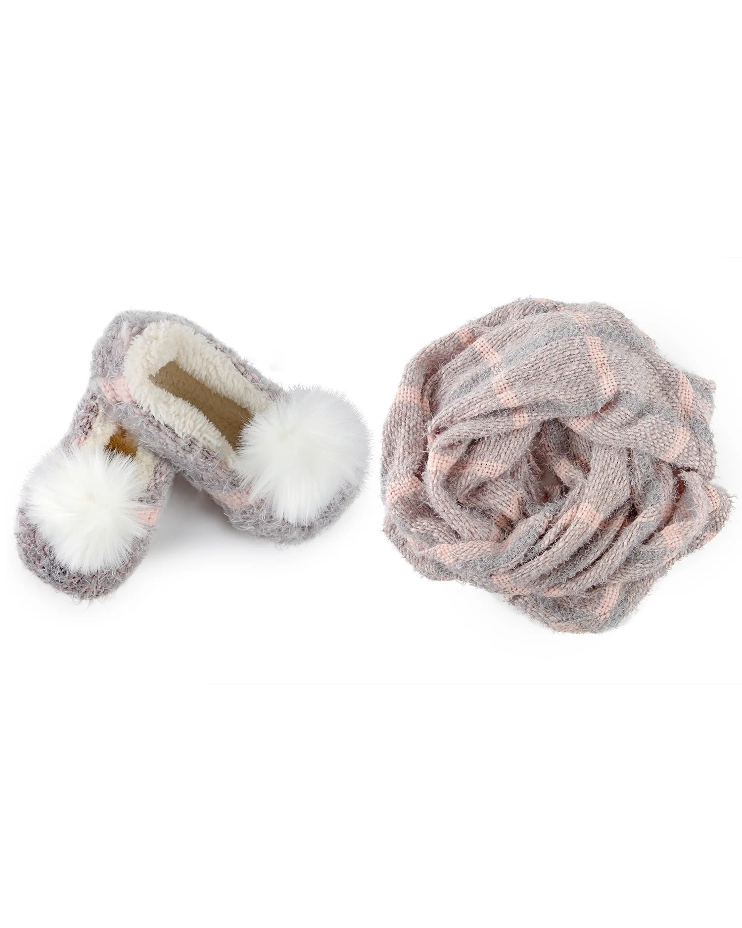 Perfect Plaid Knit Shawl & Plush Lined Slippers