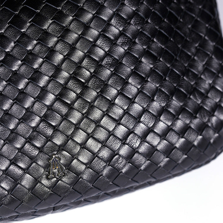Découvrez le Sac Ballon Tressé Noir, une pièce unique et sophistiquée qui allie artisanat et fonctionnalité. Confectionné en cuir d’agneau tressé intrecciato à la main, ce sac se distingue par sa texture artisanale et son coloris noir. La doublure en coton bio offre un intérieur doux et respectueux de l’environnement.