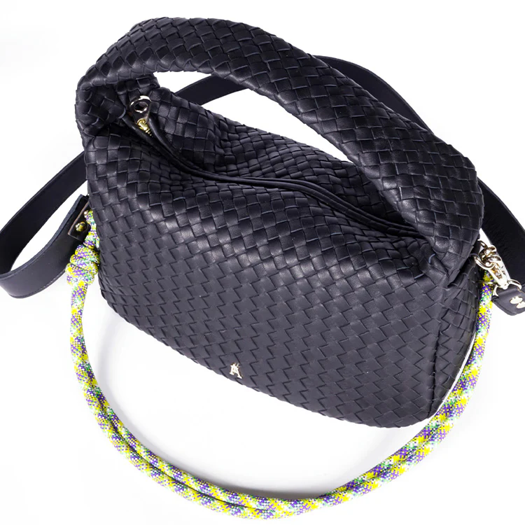 Le Sac Ballon Tressé est livré avec deux bandoulières : une en cuir fixe de 90 cm pour un porté crossbody et une corde d’escalade réglable pour un style plus mode. Sa fermeture à zip garantit la sécurité de vos essentiels, tandis que son design polyvalent permet de le porter au bras, à l’épaule ou en crossbody.