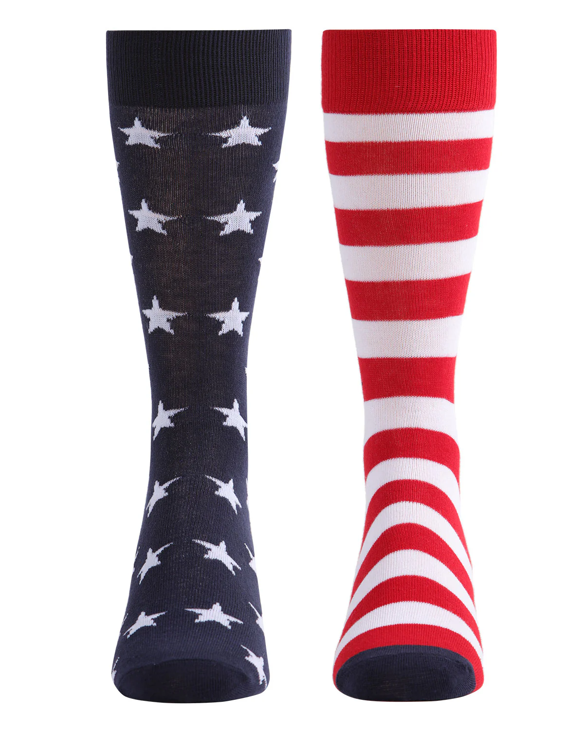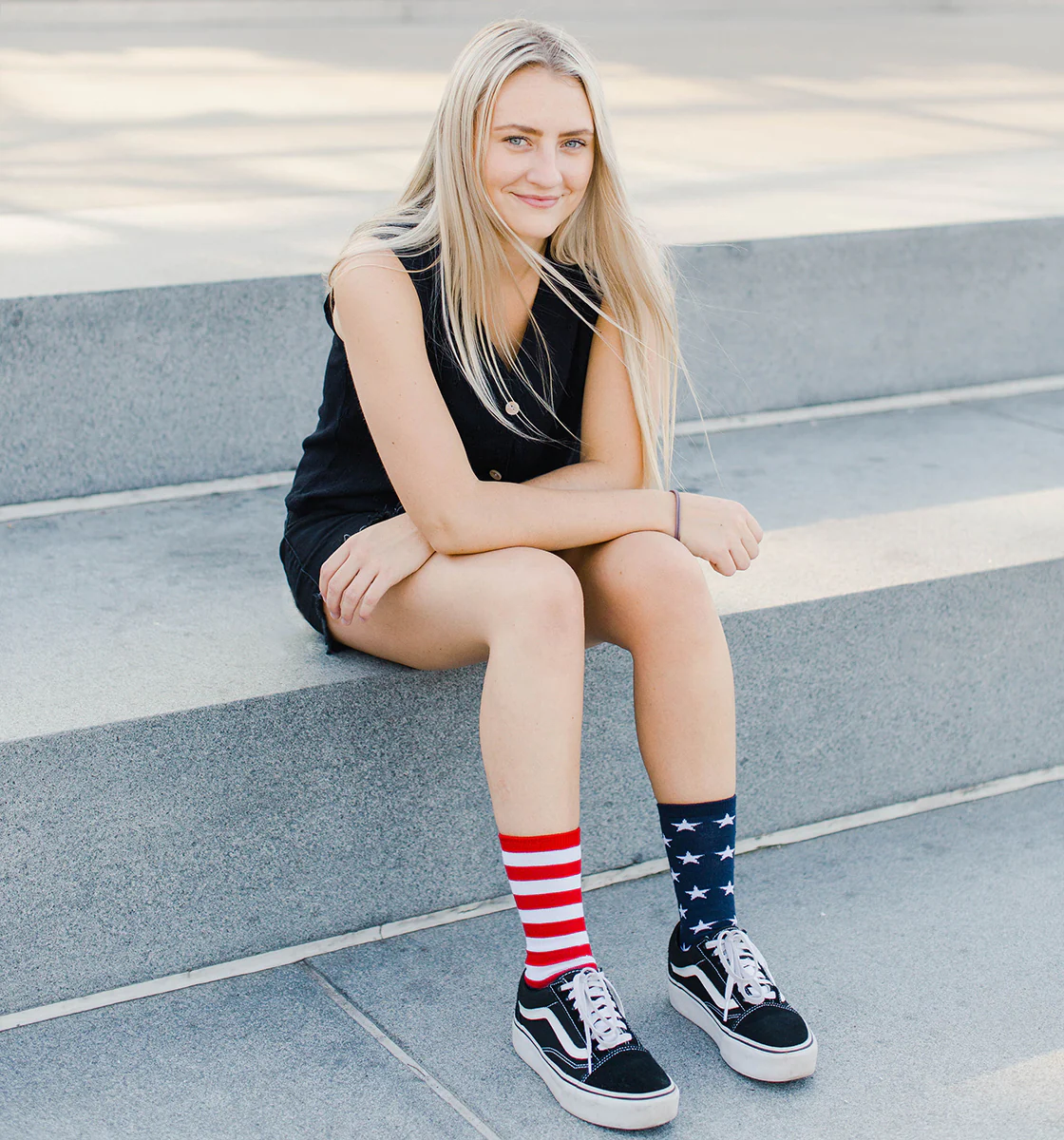 Celebrate the red, white, and blue – and comfy feet too! Our Stars and Stripes Crew Socks make any outfit patriotic, made with the finest yarn to keep you cozy and sporting Old Glory across both feet. Give them a ten toe salute!