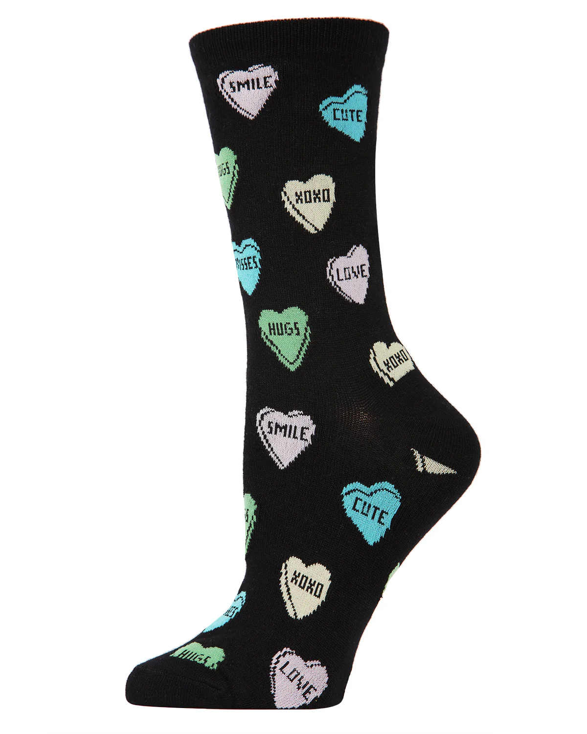 Let your loved ones know how you’re feeling this Valentine’s Day with these sweet, conversational candy crew socks. Whether you want to say Be Mine, or give hugs and kisses, the message is clear! And we’re all about spreading the word this season… all over these comfy, bamboo rayon blend socks.