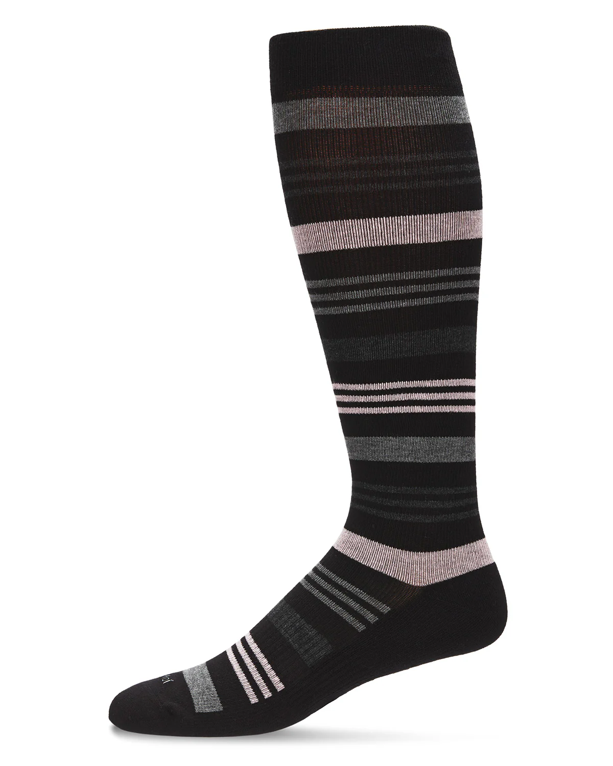 Unisex Black Multi Striped Cotton Blend 15-20mmHg Graduated Compression Socks