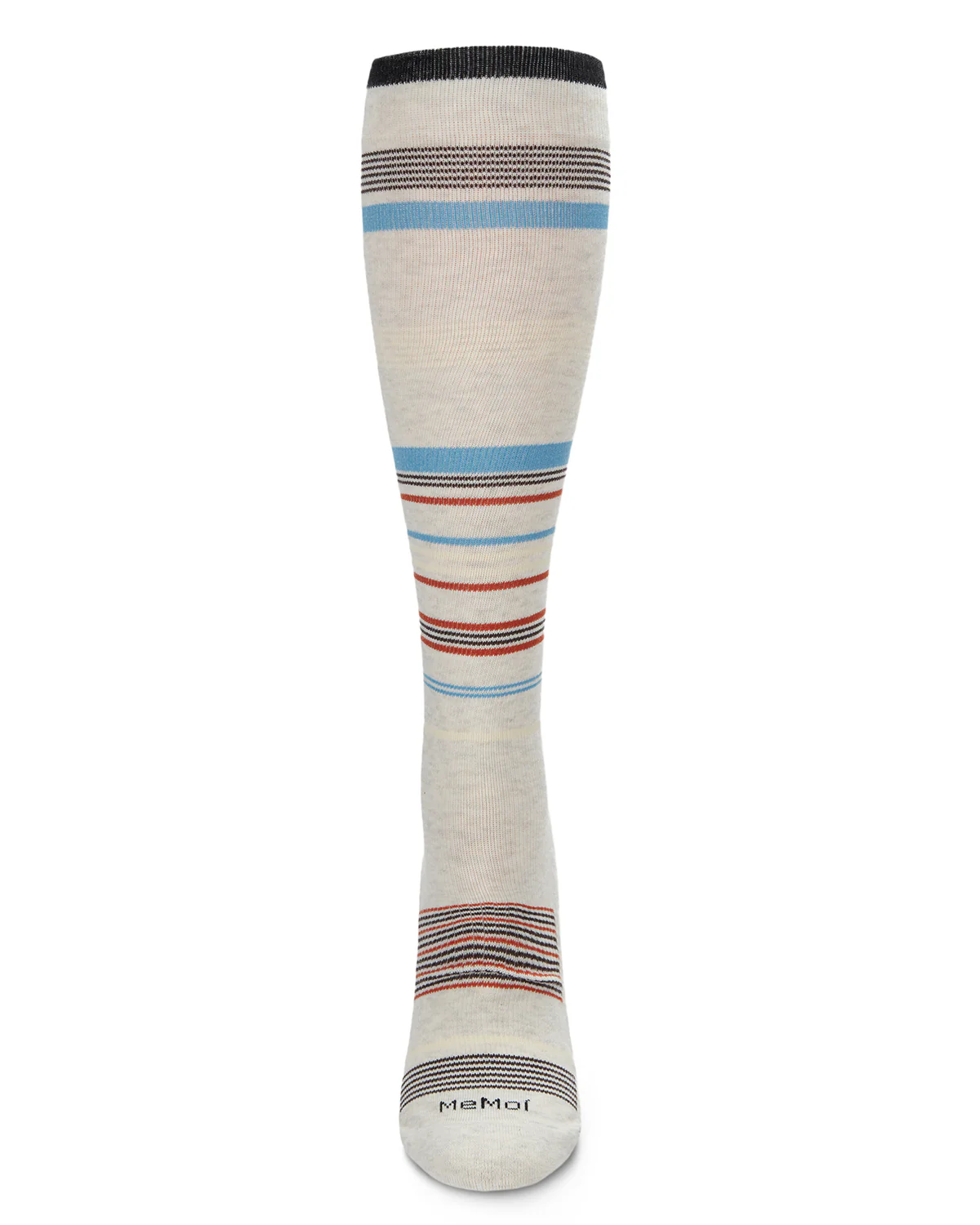 Unisex Multi-Striped Cotton Blend 15-20mmHg Graduated Compression Socks