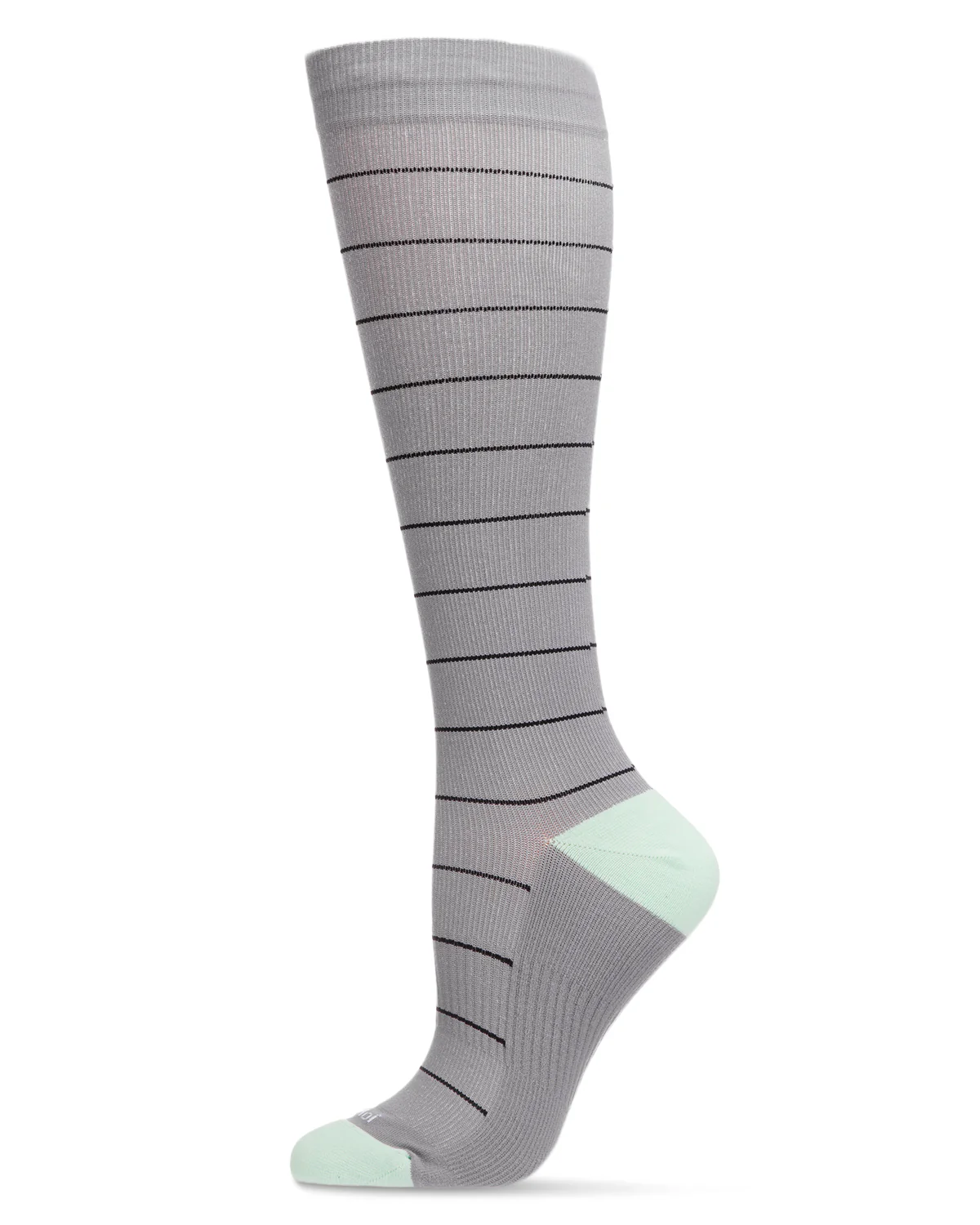 Unisex Thin Striped Antimicrobial Nylon 15-20mmHg Graduated Compression Socks