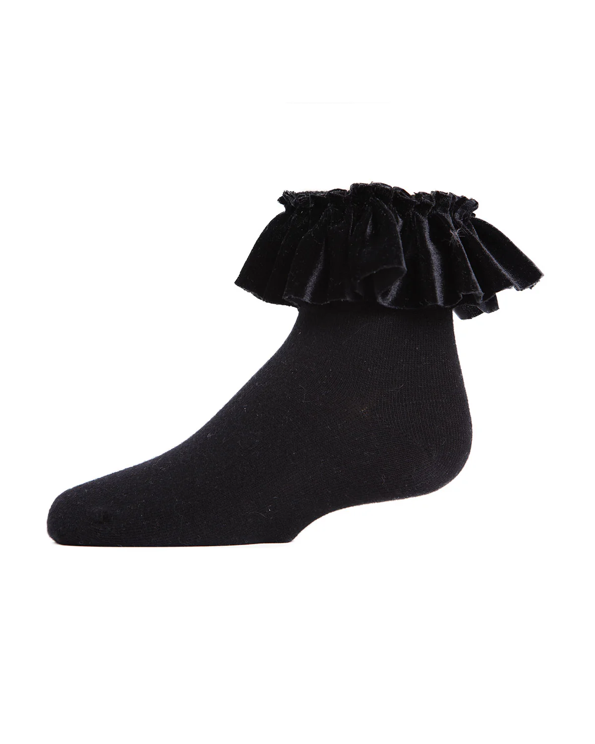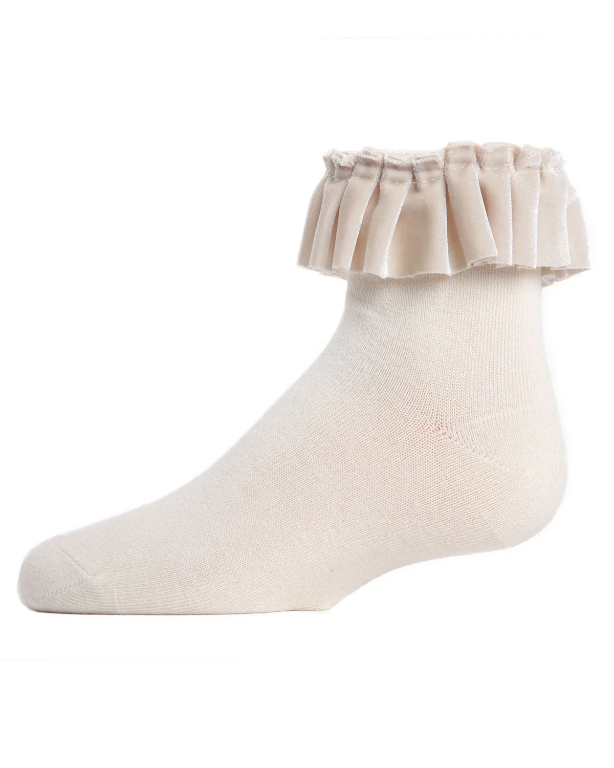 Velvet Pleated Girls Cotton Blend Anklet Socks