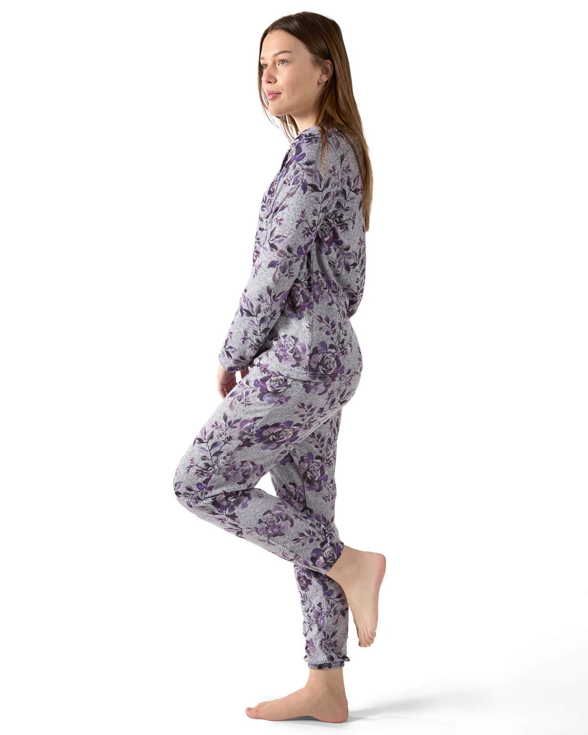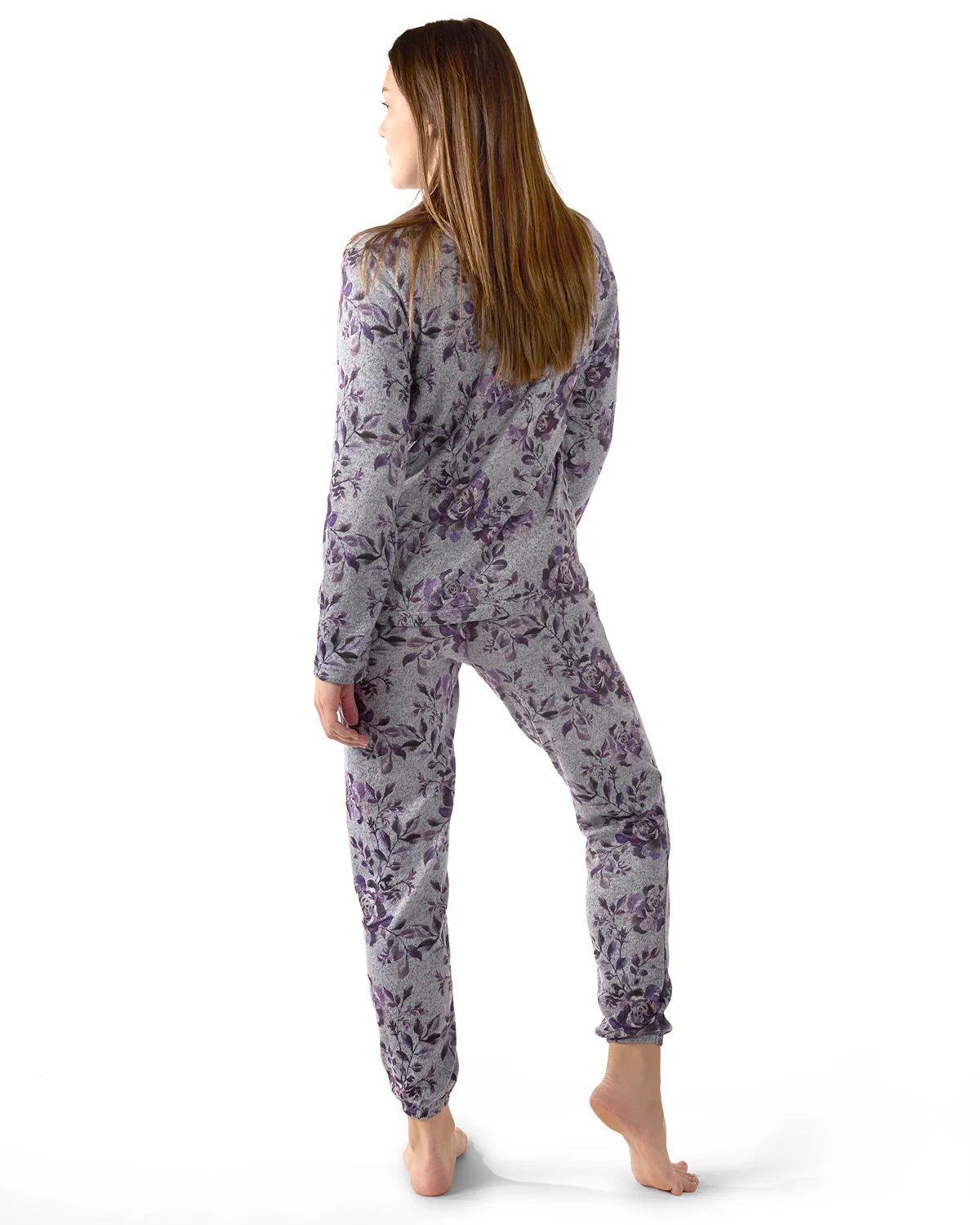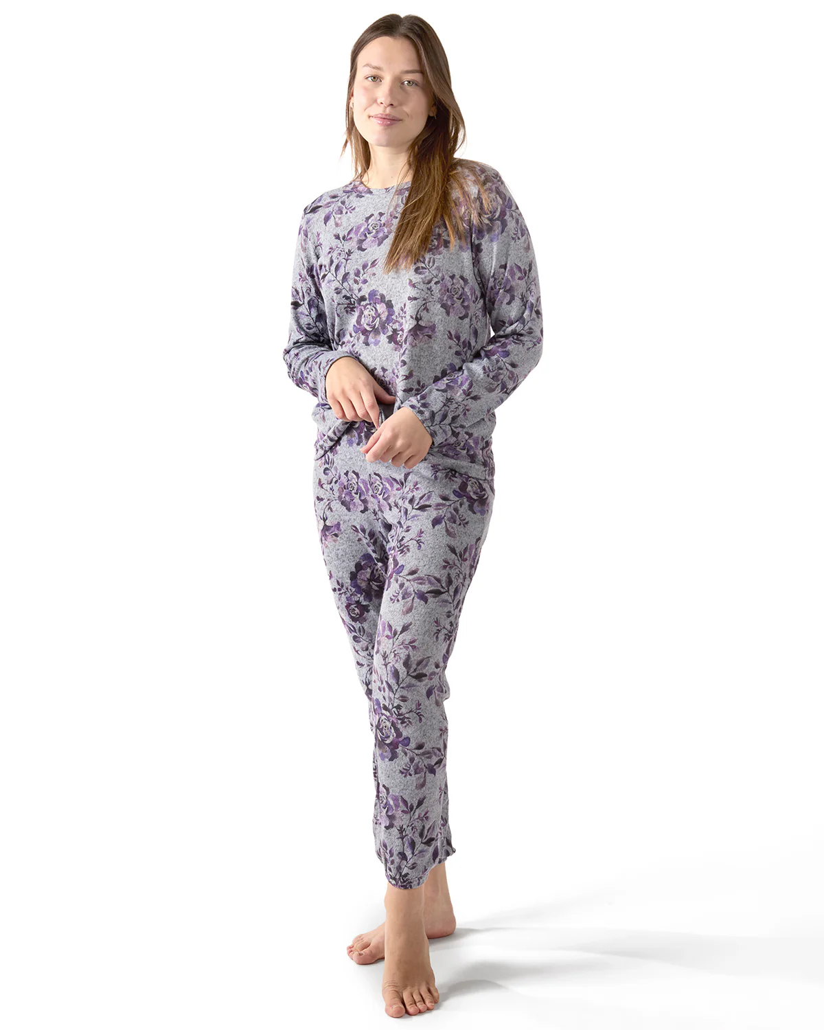 Women’s 2 Piece Purple Blossom Long Sleeve and Tapered Pant Pajama Set