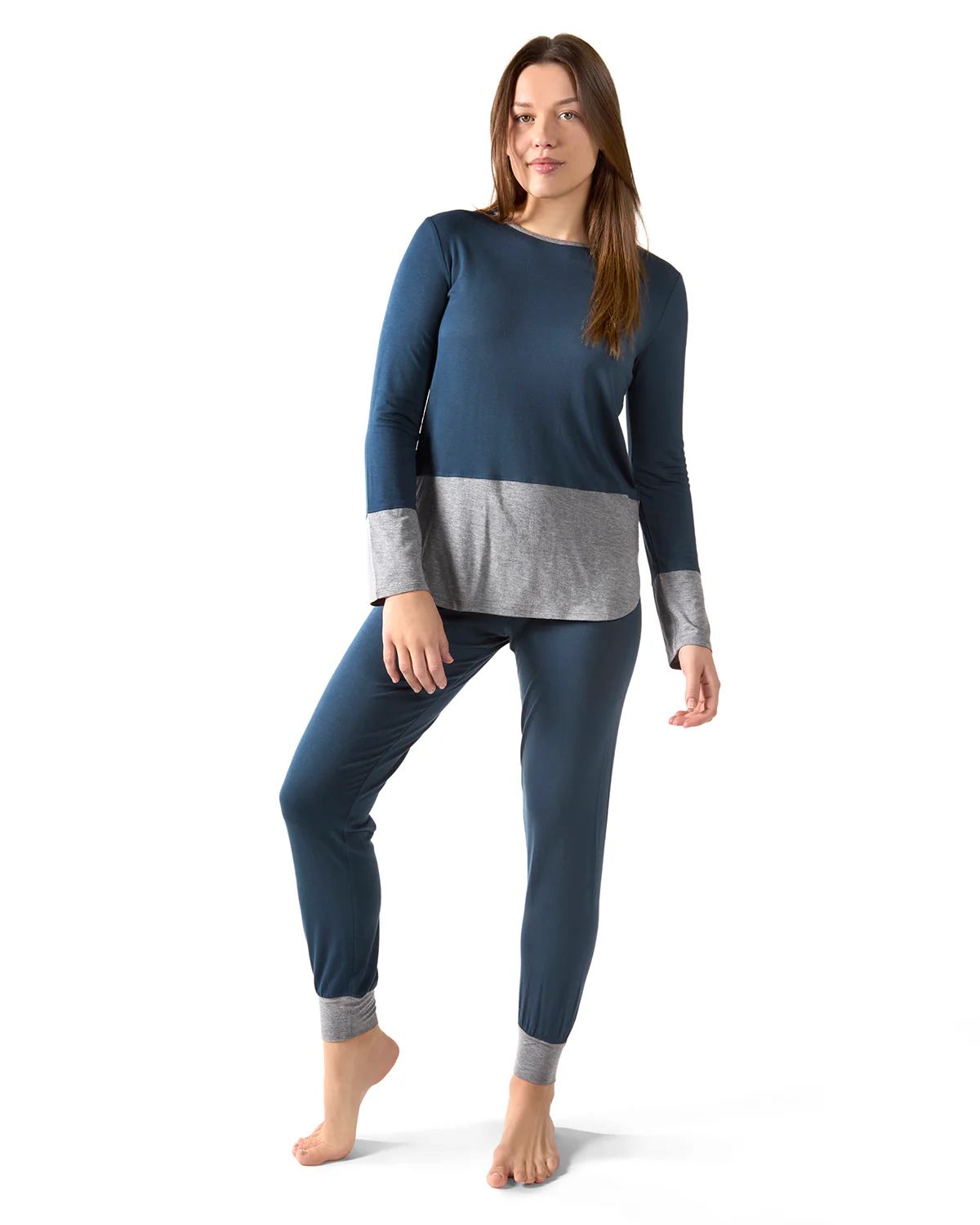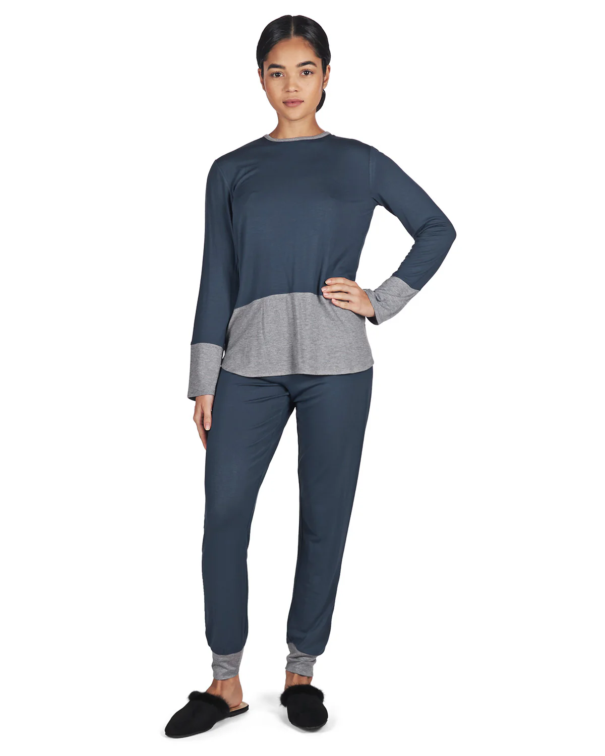 Women’s 2 Piece Two Tone Blue and Gray Pajama Set