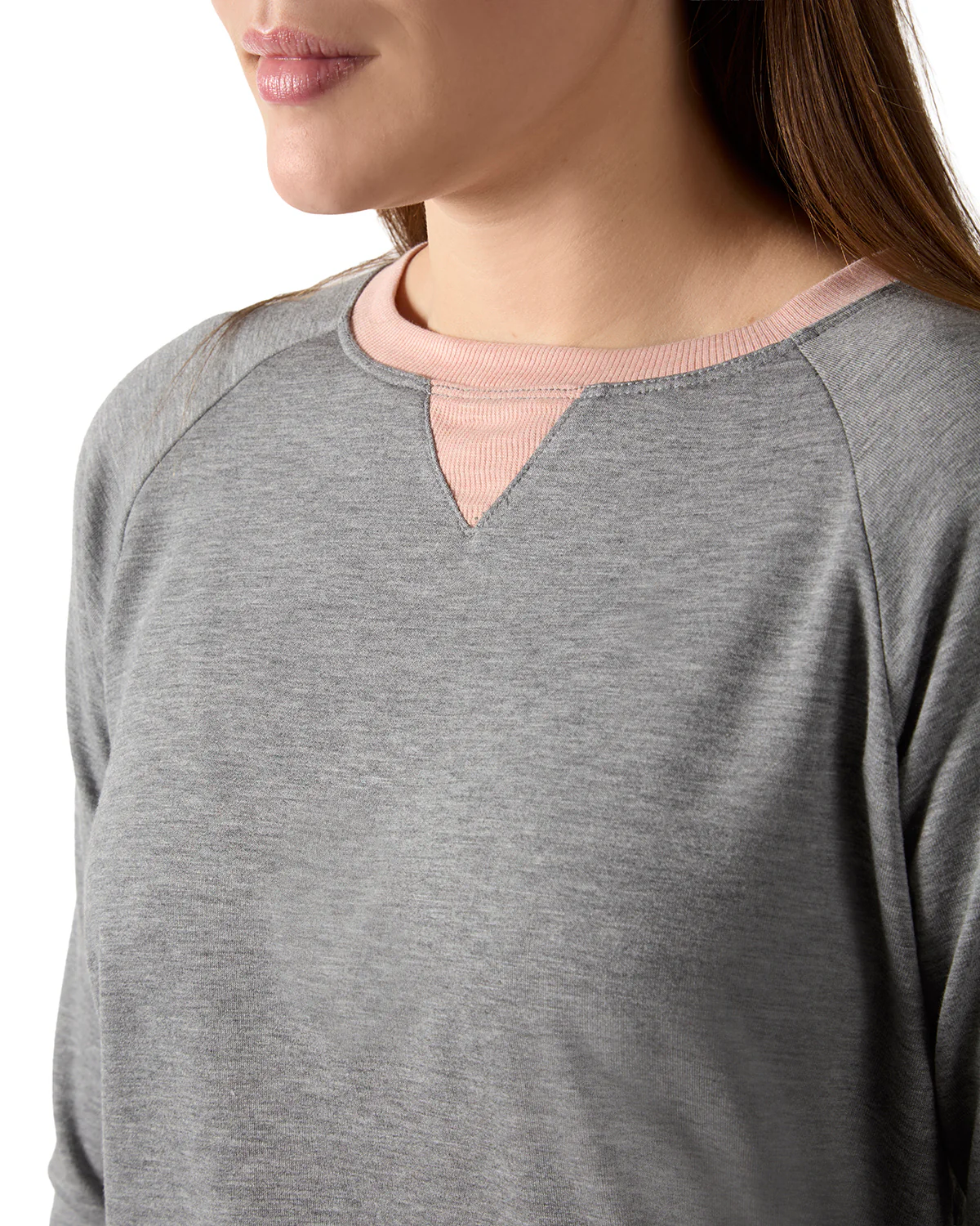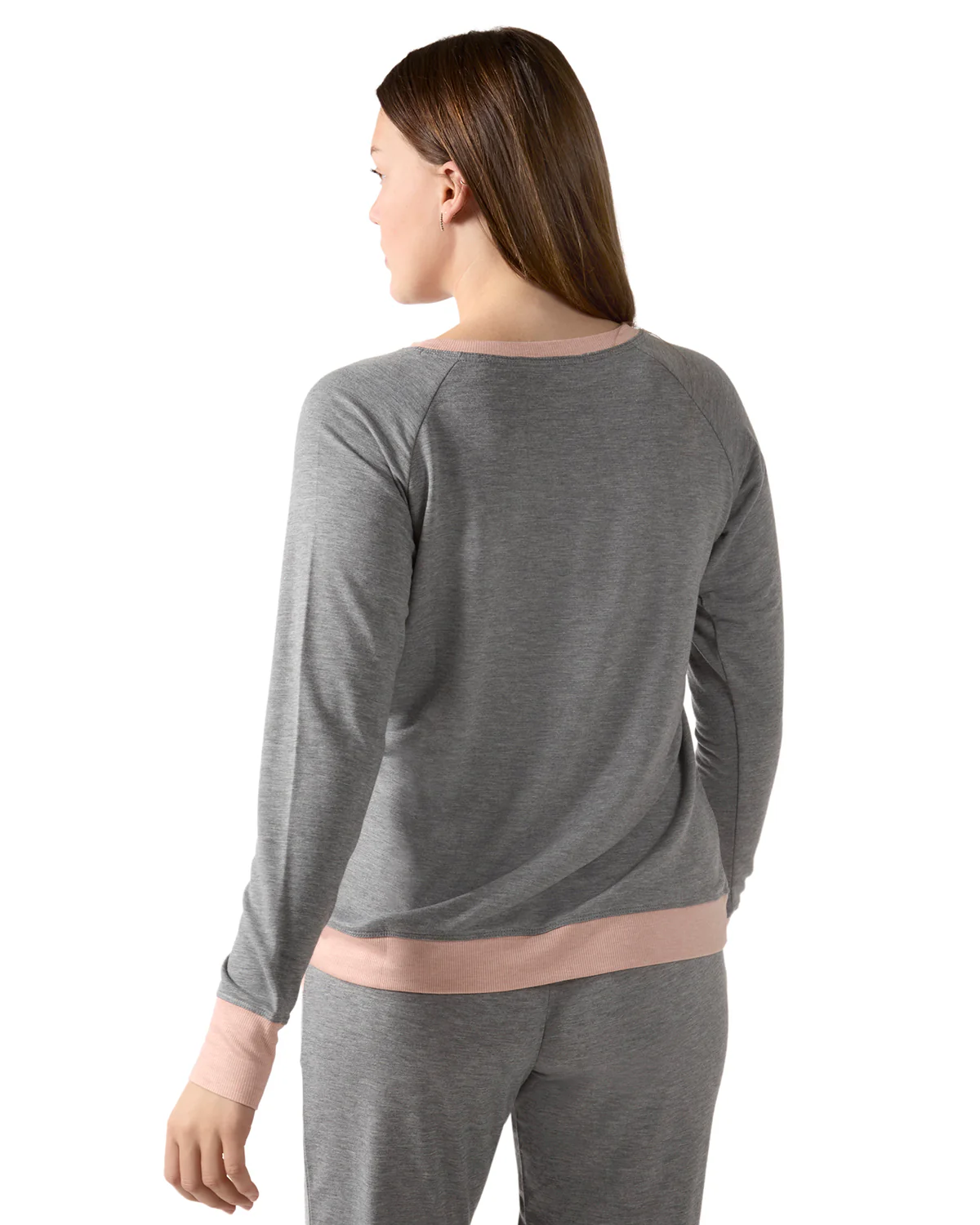 This All Day Lounge Raglan Pullover is the ultimate balance of comfort and easygoing style. Its ultra soft and lightweight fabric blend makes this pullover perfect for lounging through spring days, whether you’re staying in or heading out. Silhouetted in heather gray with a feminine pop of blush, the All Day Lounge Raglan Pullover drapes beautifully and moves with you.