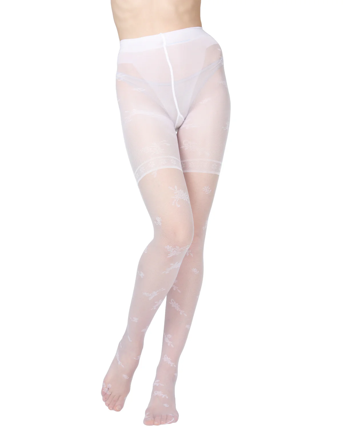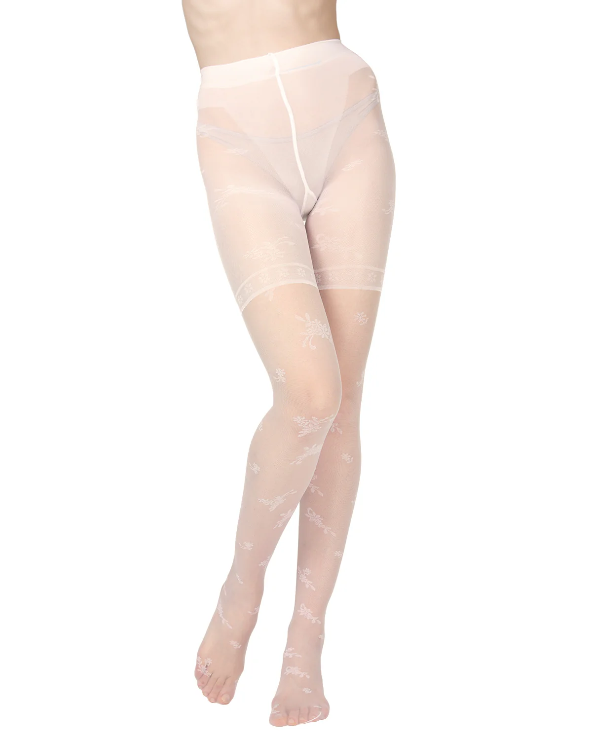- Silky sheer pantyhose with floral design