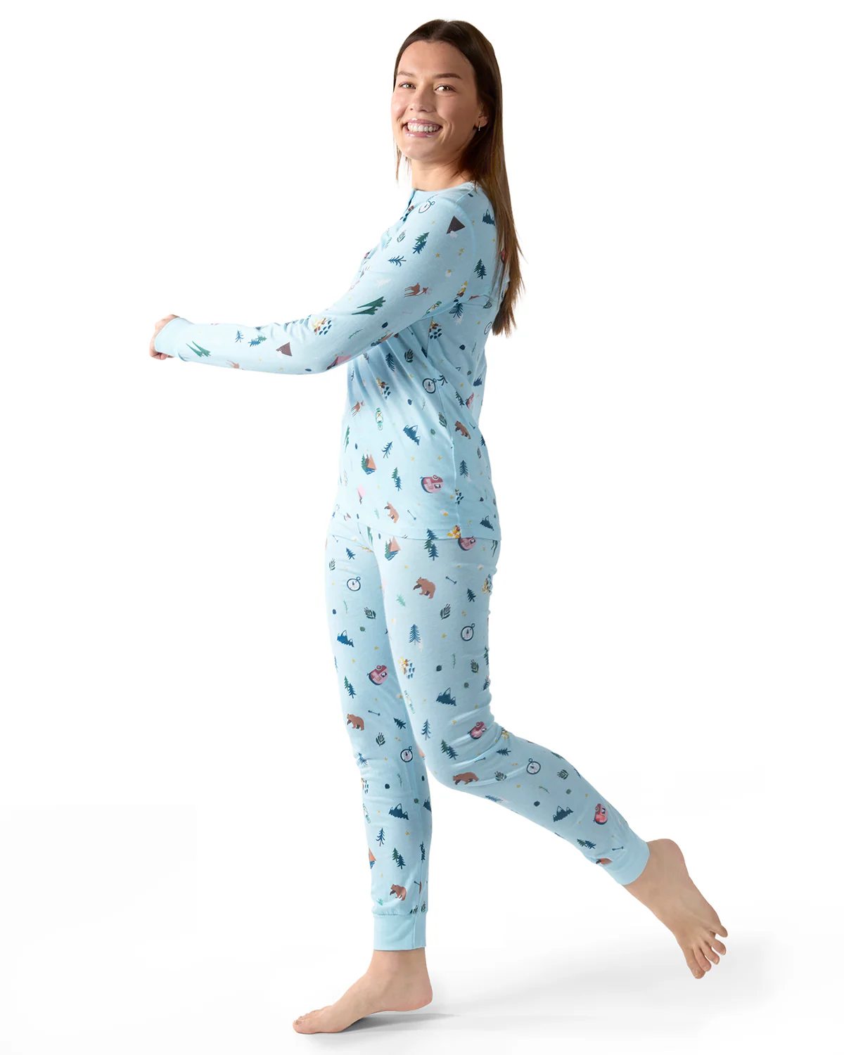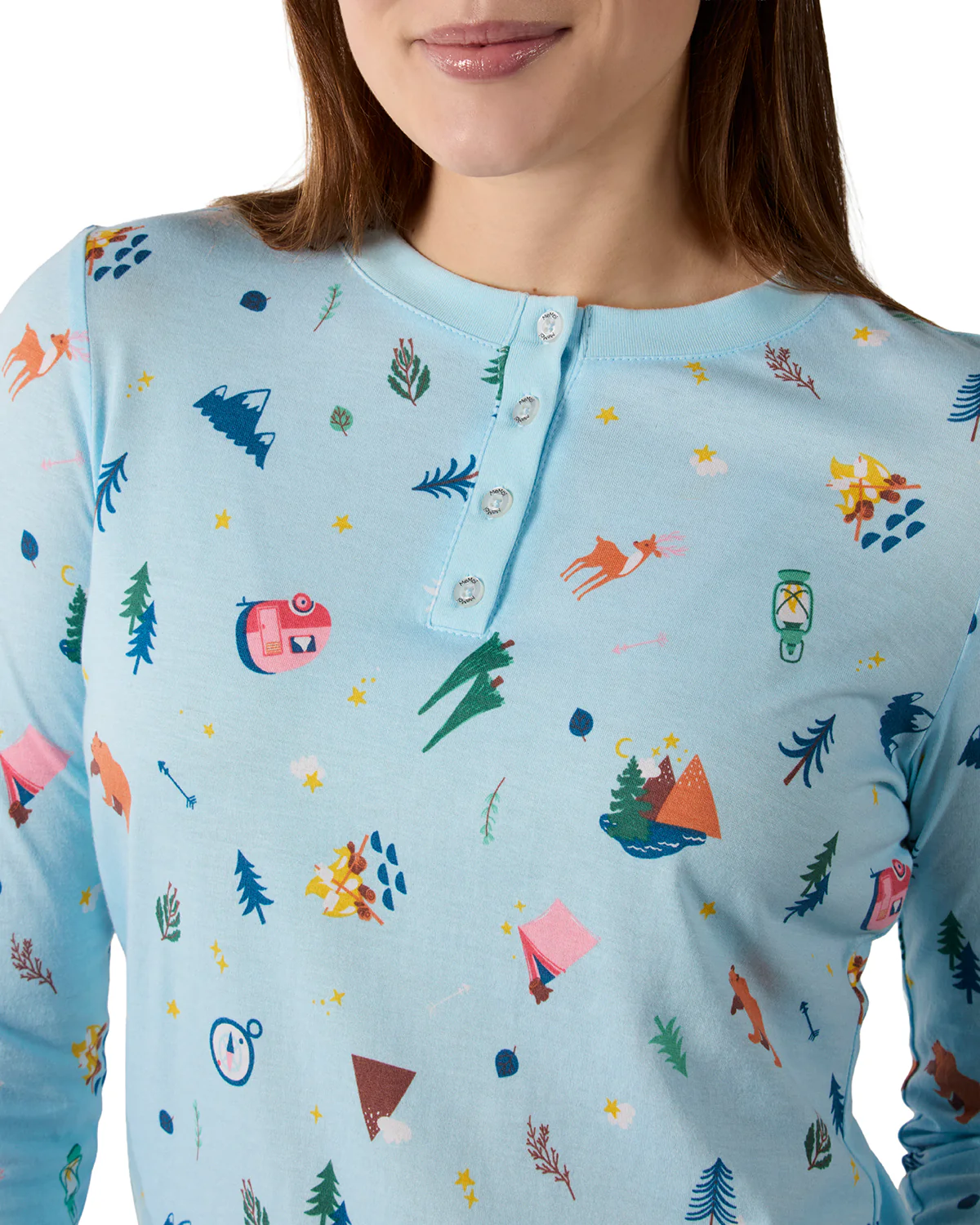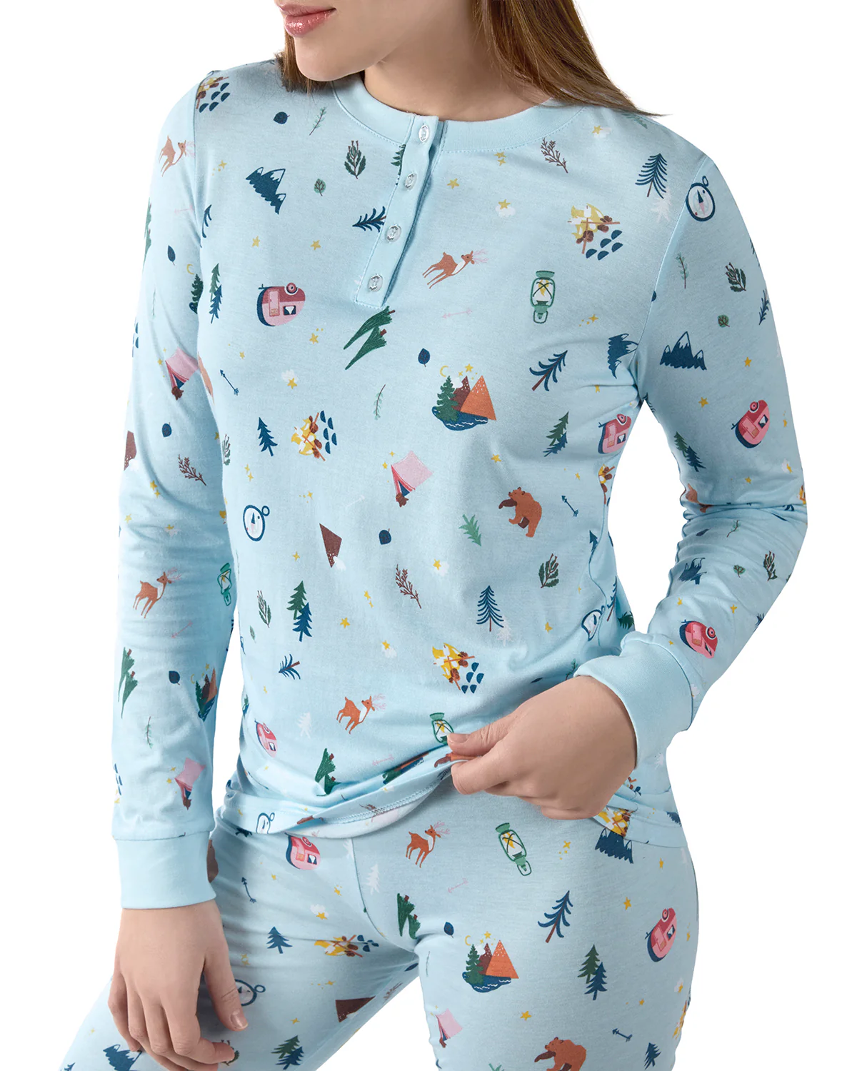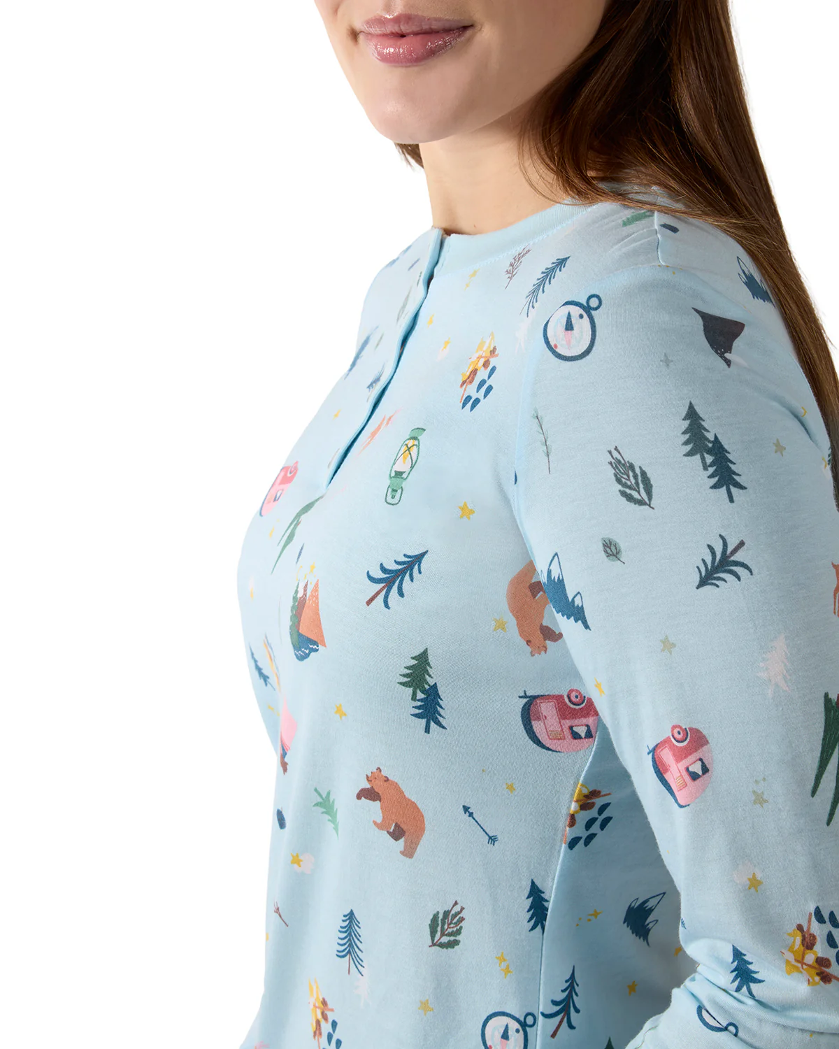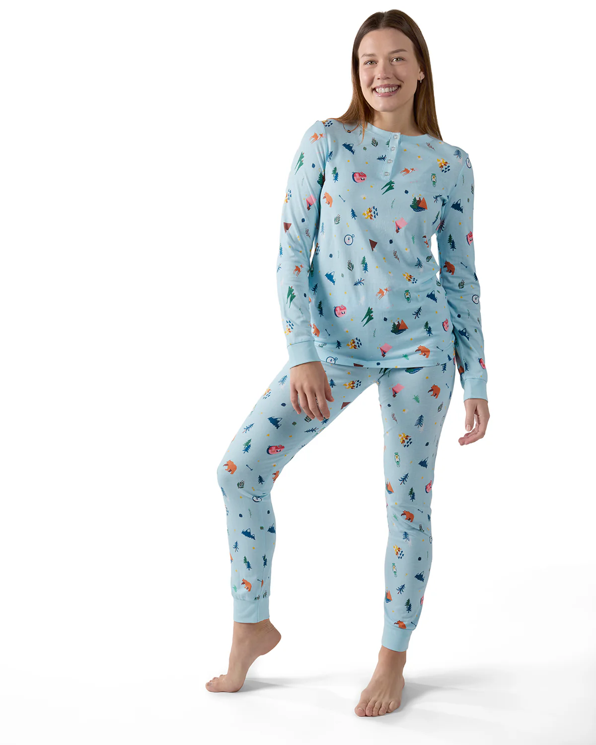 Give up sleepless nights, and get better zzz’s in our Bear and Campfire Fun Two Piece PJ Set. Ultra soft polyester and spandex are woven together to create a soft and breathable Henley so you can say goodbye to those unbearable night sweats. Printed bottoms are lightweight and designed with a cuffed bottom that sits comfortably at the ankle, and finished in adorable cozy camping pattern. Built to last, enhanced knit prevents pilling so you can enjoy these from season to season. They come in a coordinating drawstring bag for easy gifting and transportation. Featuring an elastic waistband for all night comfort, so you can move freely. Pair them with our Beverly Fur Plush Slippers to complete your new favorite lounge attire. The only downside, you might never want to take them off!