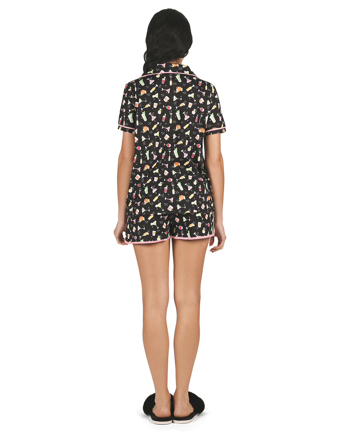 Give up sleepless nights, and get better zzz’s in our Cocktail Notch Collar PJ Set. Ultra soft cotton and rayon yarns are woven together to create a timeless silhouette. Featuring a silky smooth and breathable button front top with short sleeves and a single chest pocket, and short bottoms that are flattering, lightweight, and finished with a classic contrast piping trim detail. Designed with an adjustable and stretchy drawstring waistband that’s ideal for napping, relaxing, and everything in between. Built to last, enhanced knit prevents pilling so you can enjoy these from season to season. They come in a coordinating drawstring bag for easy gifting and transportation.