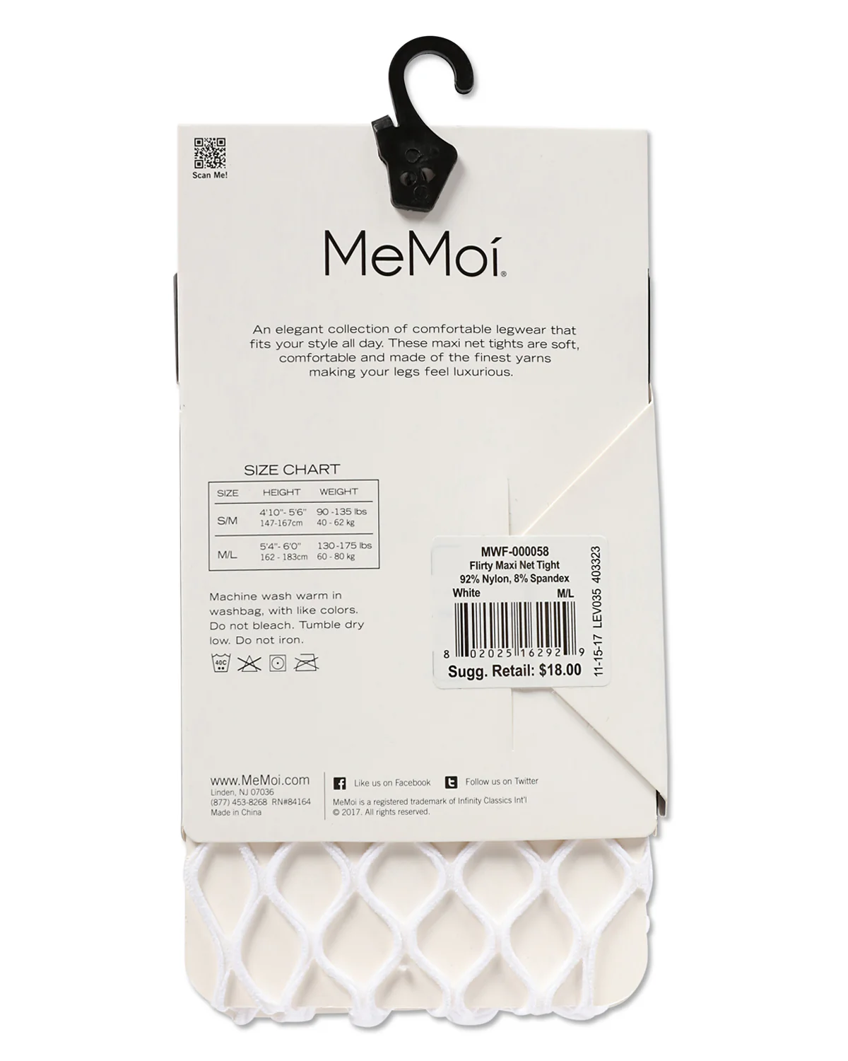 A bit bigger than the average fishnet, MeMoi maxi net fishnet tights show off a lot more skin than the classic French pattern. Sexy from waist to toe yet designed with comfort in mind, maxi fishnets have a solid comfort waistband and a solid toe. This all-over knit is ready for stepping out paired with a favorite miniskirt and heels, or rock a remix by layering this timeless knit under ripped jeans.