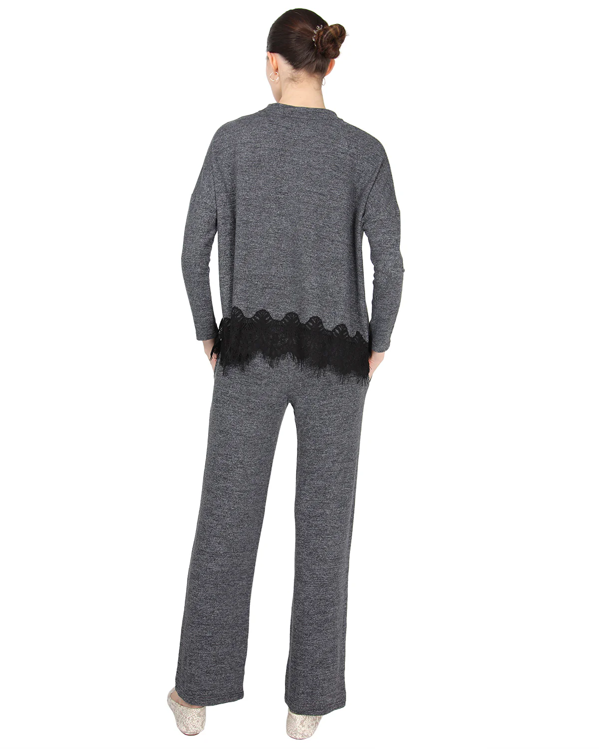 Women’s Long Sleeve Lounge Set with Contrast Lace Hem