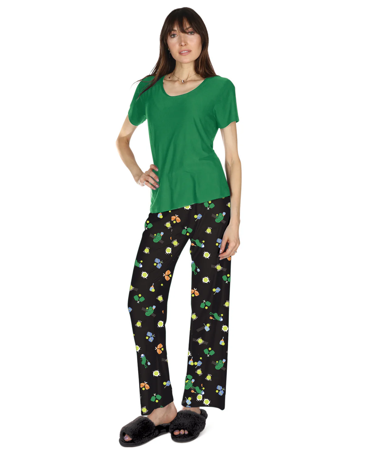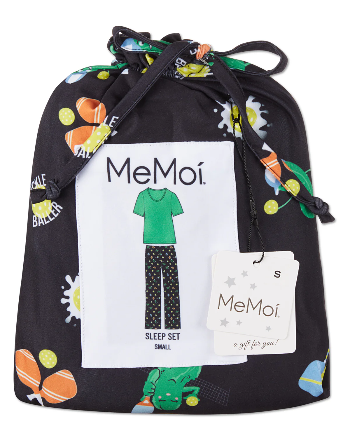 Give up sleepless nights, and get better zzz’s in our Pickleball Princess Two Piece PJ Set. Soft and silky yarns are woven together to create a breathable jersey scoop neck that keeps you cool. Printed bottoms are lightweight and designed with a fun pickleball pattern that’ll be a slam dink. Built to last, enhanced knit prevents pilling so you can enjoy these from season to season. They come in a coordinating drawstring bag for easy gifting and transportation.