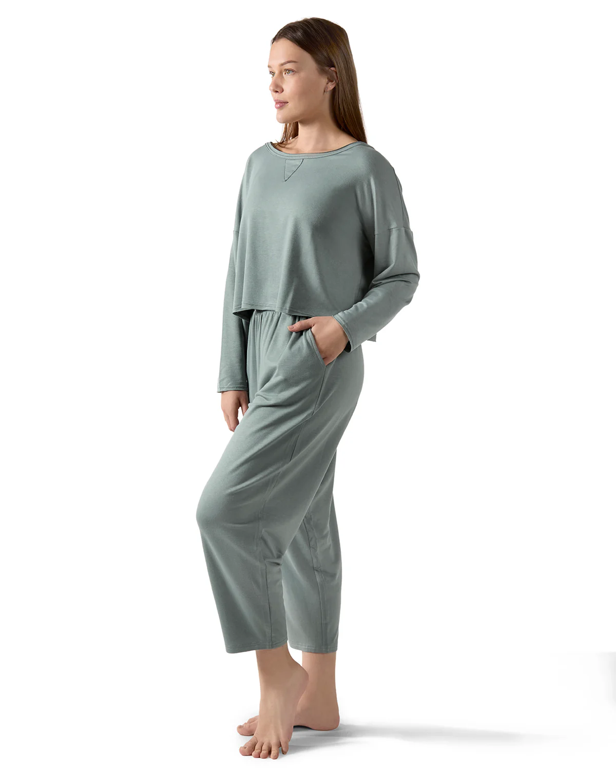 Women’s Bamboo-Blend Spa Terry Matching Top and Pants Set